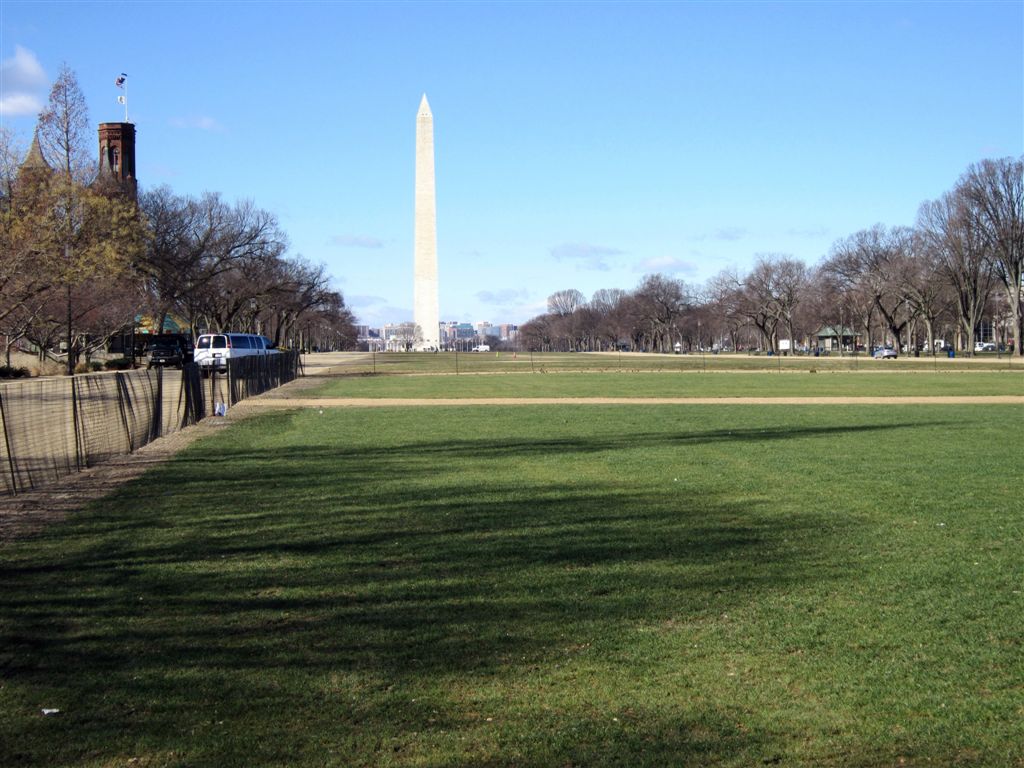 [It’s January 31. Our first day back in D.C. Not unlike Boston, we had a bright, sunshiny day – with about 40 mph winds, making the windchill, again, very uncomfortable. We were amazed at the condition of the mall, which had been “all fixed up” recently. I think it was a first. I lived there over 30 years, and for the better part of that the so-called grassy area of the mall was splotchy at best. In the Park Service’s defense, the mall gets a lot of use (including various kinds of ball games) – it’s the nation’s front yard. A million people were here less than 2 weeks before for the inauguration.]