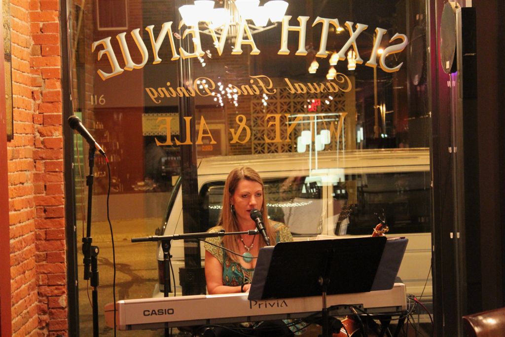 [And then on Saturday, our BFF, Lisa Lynn, paid her monthly visit to SAWA. When we arrived, Lisa greeted us by saying she had reserved two tables up front for us and . . . Julie and Matt Veline, who were coming with the owners of Eddy’s, and with Shelly Karnis. Matt later told us he and Julie are only performing once a month now, at Eddy’s, and that he is Lisa’s biggest fan. So, it was pretty neat (as we say in the music business) when the Veline’s joined Lisa for a couple of songs. Shelly has a foreground cameo in a couple of the videos, no doubt to her chagrin, and Karen Berg* has a photo op cameo in “The Weight.” Lisa forgot the words during “Hotel California” (it happens), so I asked if I should still put it on YouTube. She said go ahead – a little comic relief. And Matt, who was playing Lisa’s guitar, had a long solo in the song – and the guitar went out of tune . . .]