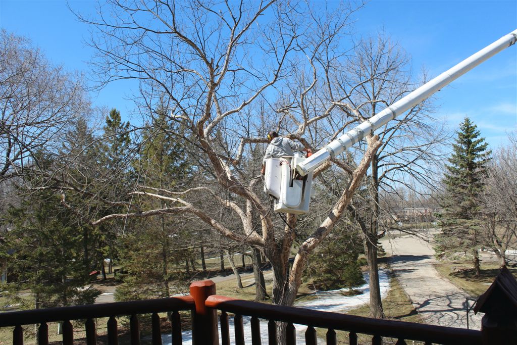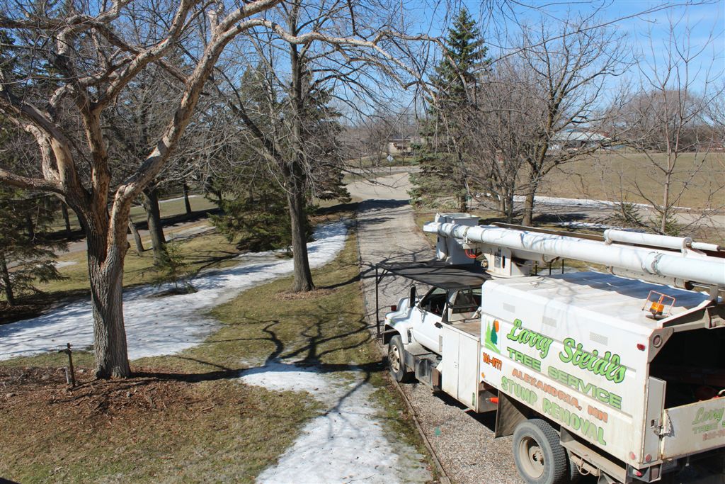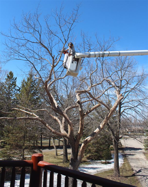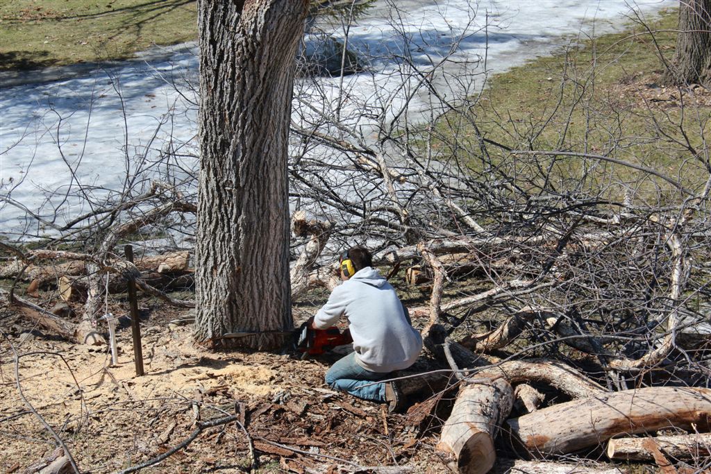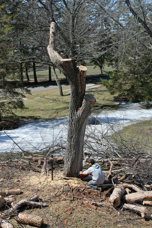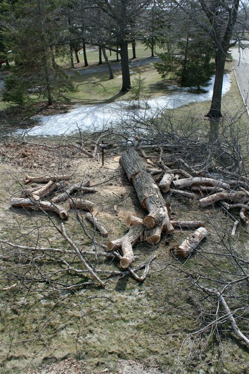 [We thought about leaving a high stump in case the next owners wanted to do a chainsaw sculpture but were advised against it.]