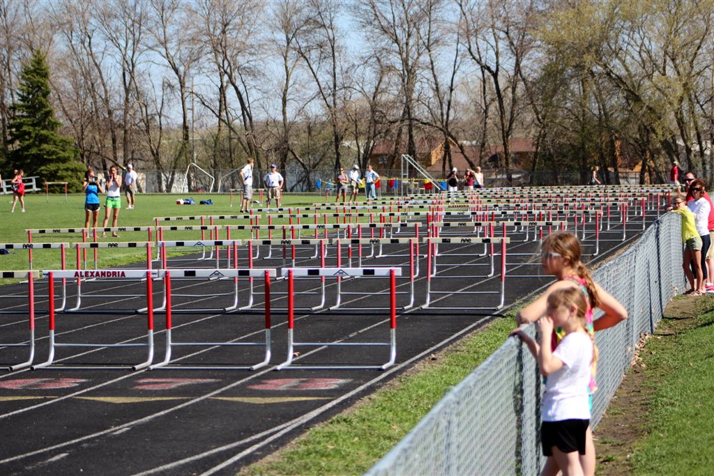 [Becca hit a hurdle late and finished 2nd, but with a PR. I learned all this in a bit as I sauntered down to the stands where I joined hockey parents Illies and Herd for the rest of the festivities.]