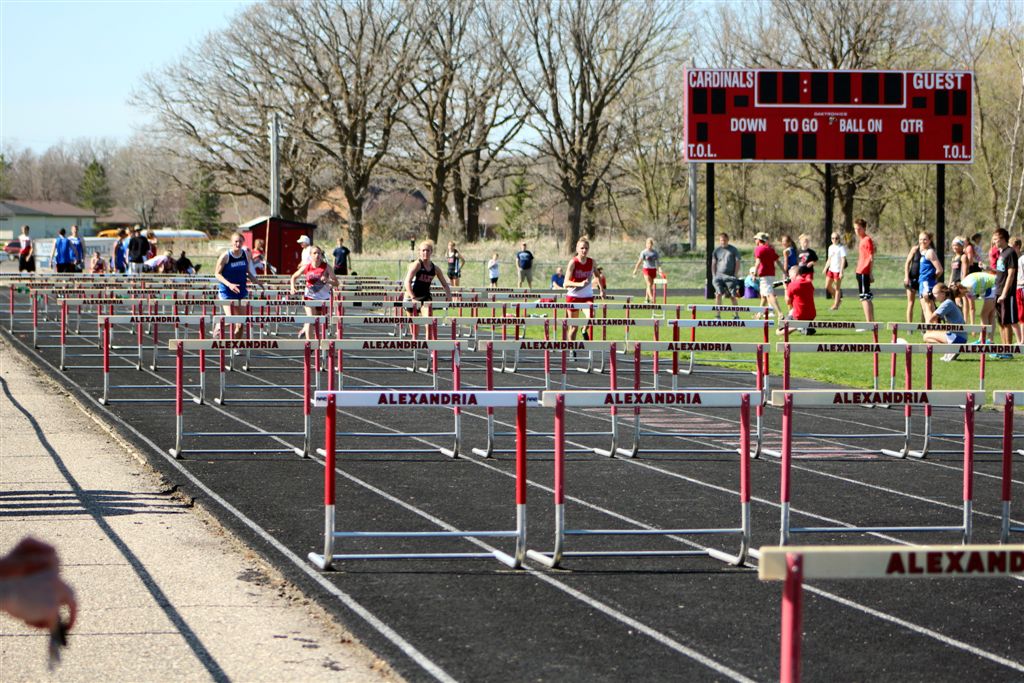 [And they’re off – athletes from Sartell (blue) and Willmar (red) flanked a Cardinal in black.]