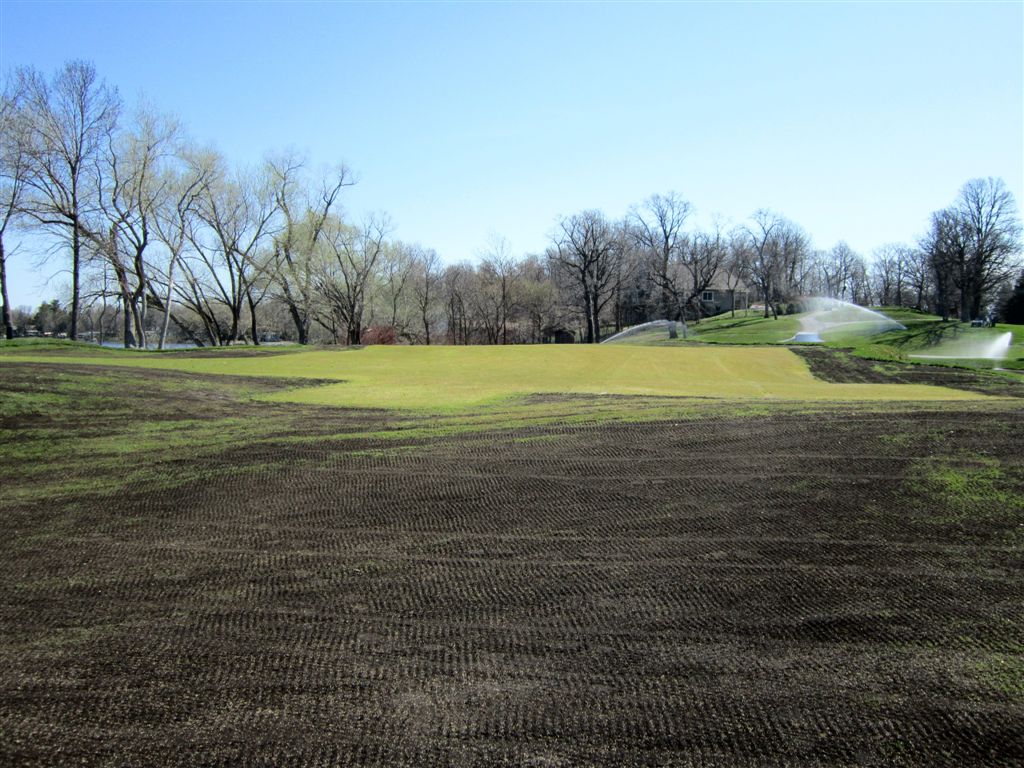 [Checking on the progress of No. 7 – the sprinklers are out, with the year in and year out anomaly of drought conditions minutes after the last flake of snow melts away.]