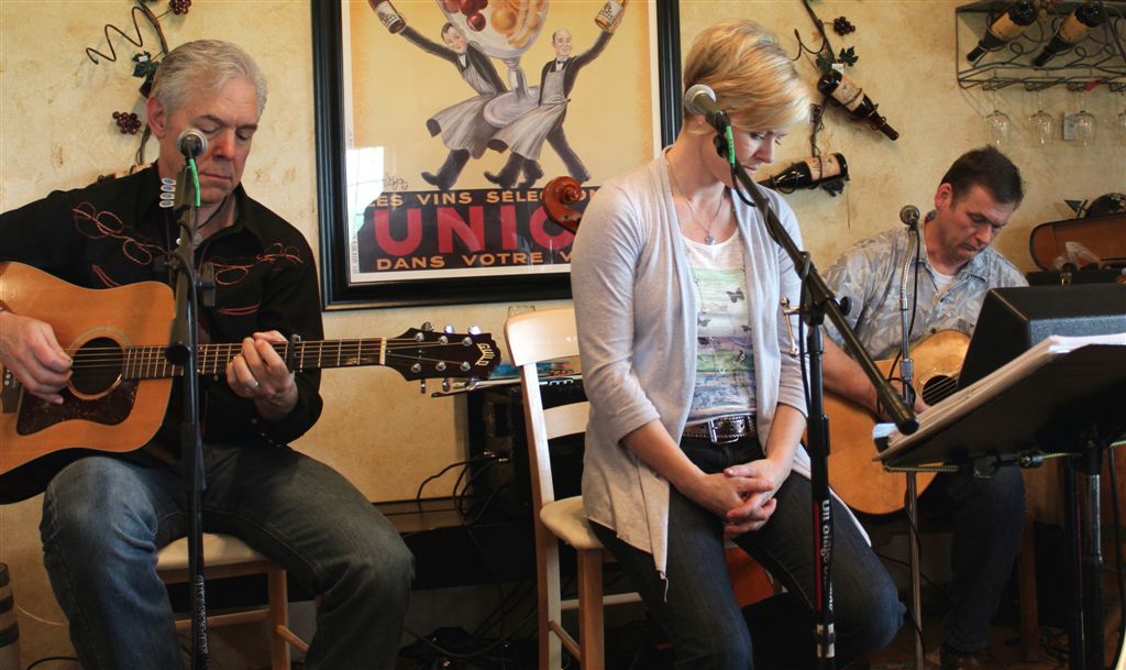 [Then it was off for an evening at Tudy and Mikko’s. I always said Mikko was responsible for (the credit and the blame) introducing the family Obert to the local music scene, which so often has kept me up well past my bedtime. This is an archival shot from last year of Mikko with his usual partners in crime, Annie and Bruce.]