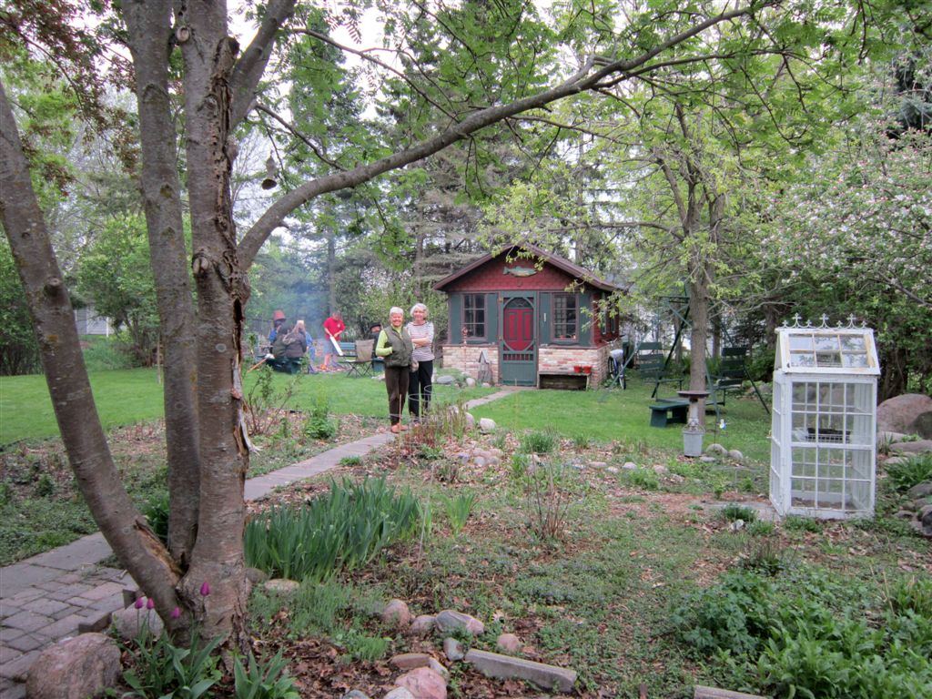[The supervisor joined Tudy in the backyard, her potting shed in the background.]