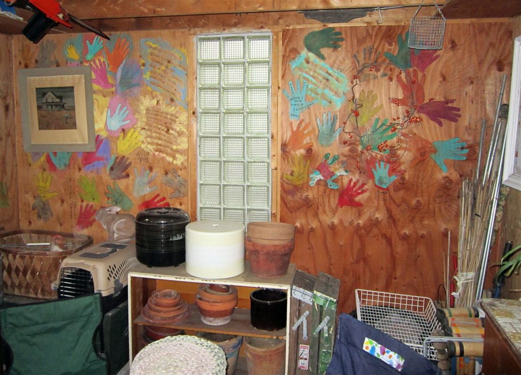 [We joined others in putting our hand prints on the potting shed walls.]