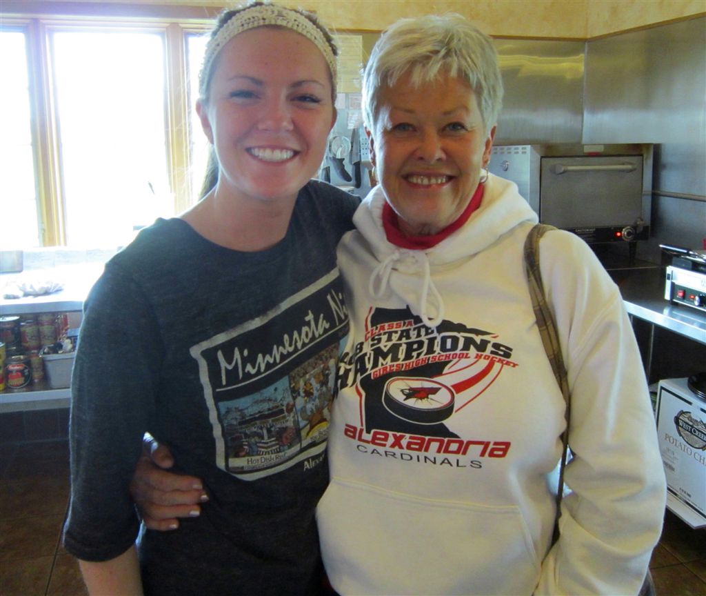 [Oh, that grill tender. Alia Kopischke, Alex hockey star, who graduated last year and just finished her freshman year at a college that I’ve forgotten again for the umpteenth time. Alia was a hockey teammate of . . .]
