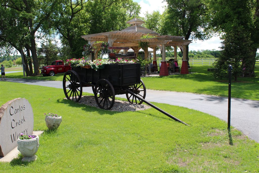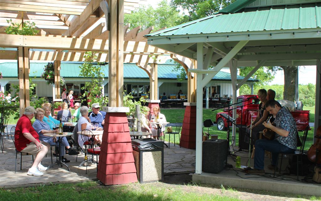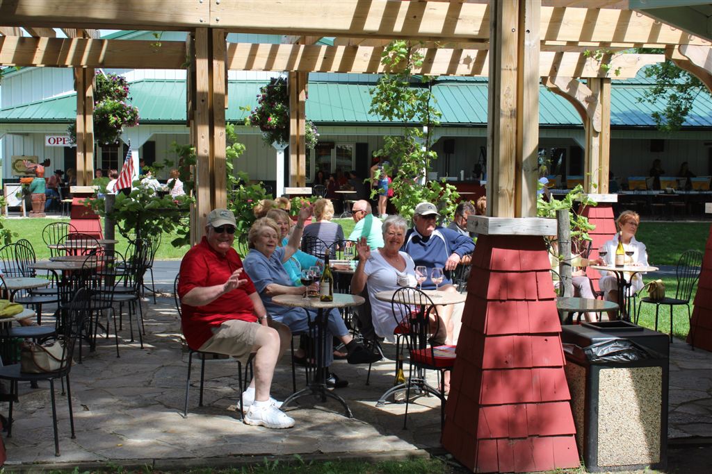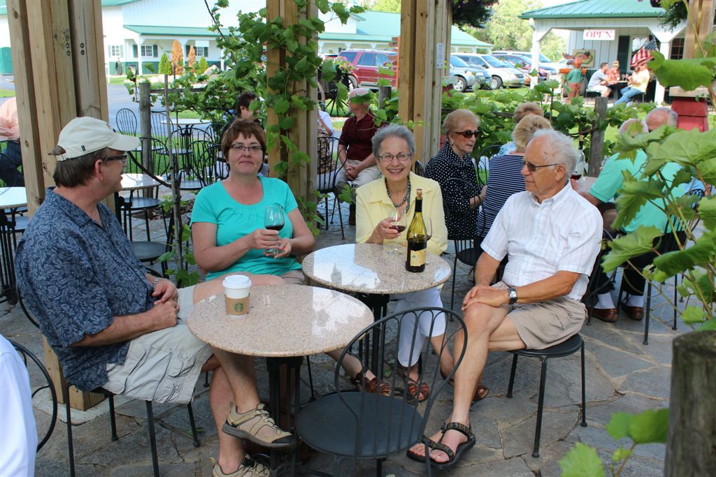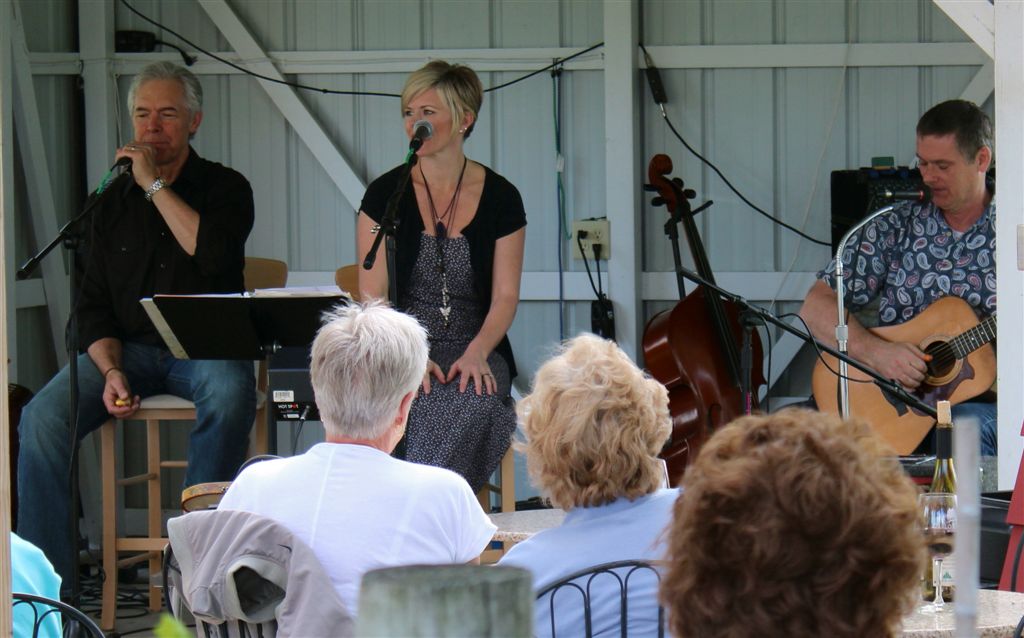 [So, it was Sunday. Harper’s Chord was appearing at the winery. We were hoping they would finally be able to play outside. Events earlier in the weekend had been weathered out (have you noticed a pattern?), and the Sunday forecast hinted at potential difficulties. But, somehow, it worked out – in fact, despite an 80-degree temperature and a 60+ degree dew point, the assembled masses occasionally felt a tad chilly as the usual “breeze” tended to move objects around. Here the supervisor, wearing one of my golf jackets, attempted her first video with her new aforementioned social media device. Results are still pending as we go to press.]