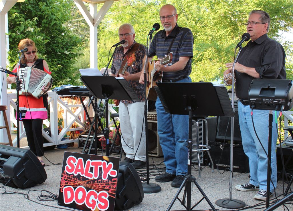 [After four straight hours with the boys from Fargo, Ken made a bee-line to Bug-A-Boo Bay while I made an in transit stop to pick up the now well-rested supervisor for an evening with the Salty Dogs. Somewhere in this process I’ve somehow been able to overcome my phobia about outdoor furniture.]