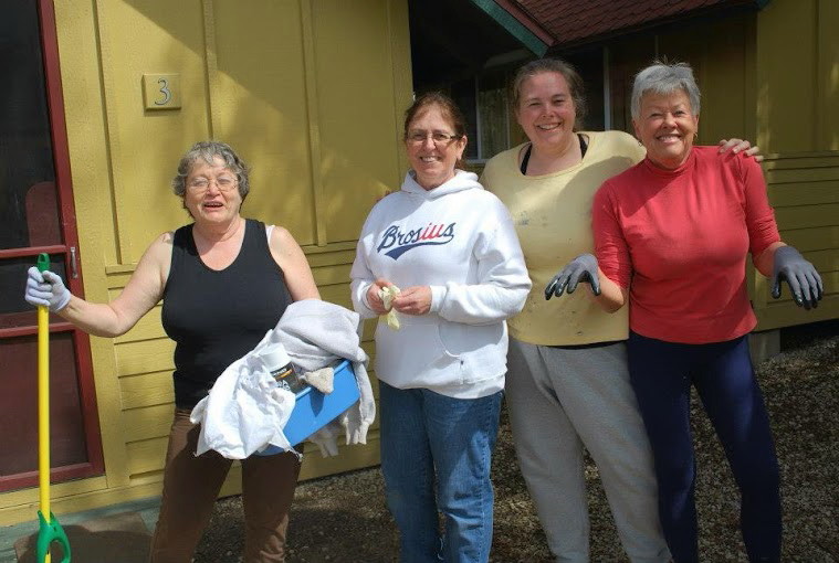 [Before camp opened this spring, the supervisor joined Tom, Jami and Danny, her sister Rita, and Nashville friends Cindy and David Dale for clean-up.]