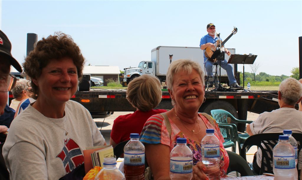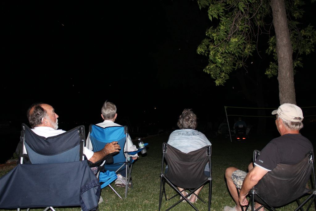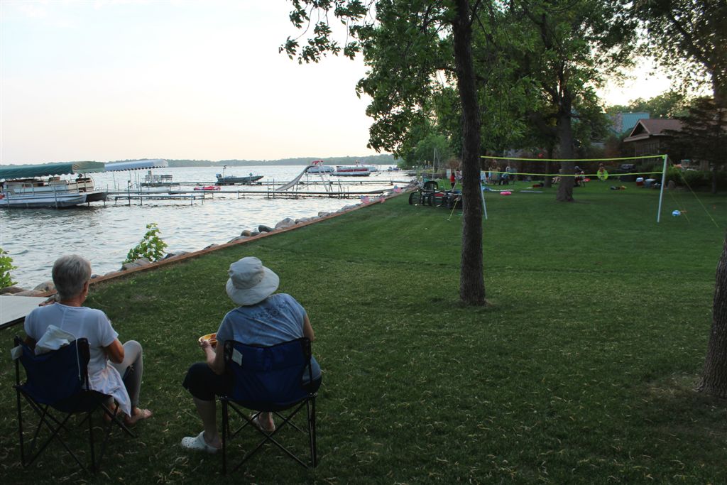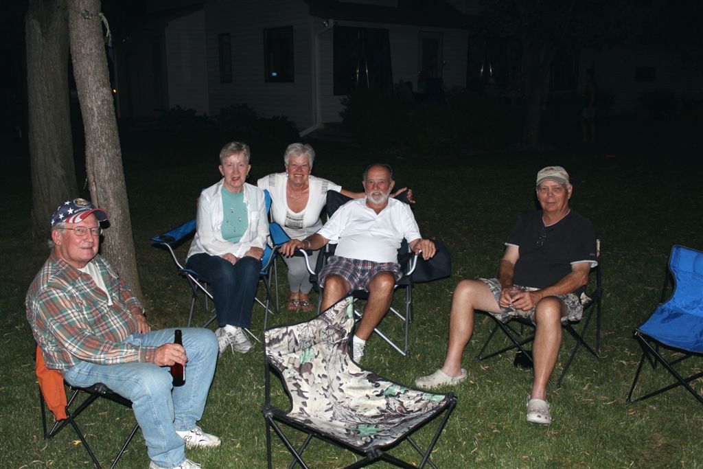 [Marlene and Rich arrived – we’re all ready now. Unlike last year, there was a nice breeze (not quite a gale) off the lake – ameliorated the hot, humid weather and kept the skeeters down!]