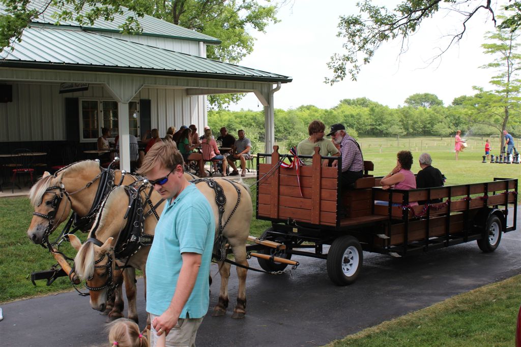 [Then came Friday. We met the Kiehnes at the winery. Pam and Merill decided to go for a ride. Pam, just back from a trip to Norway, recognized the horses as Norwegian something-or-others. 🙂 ]
