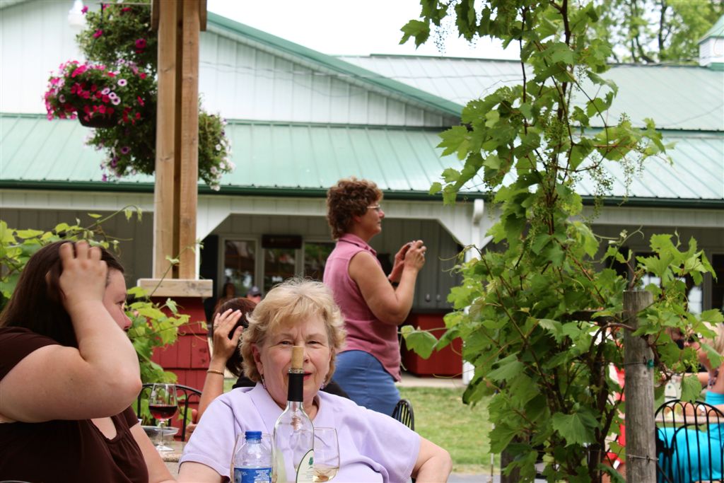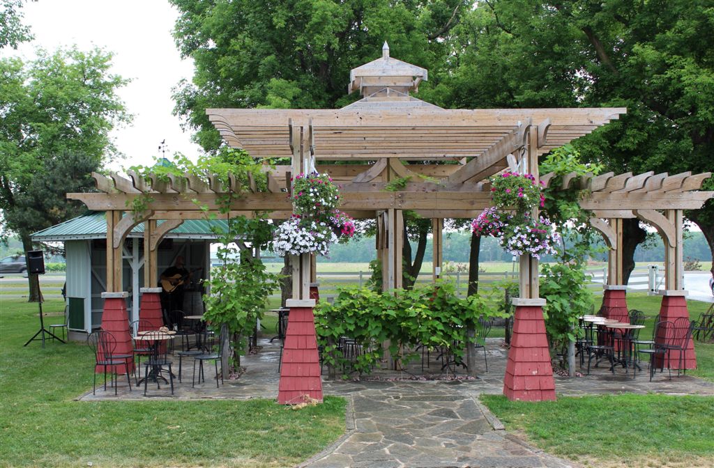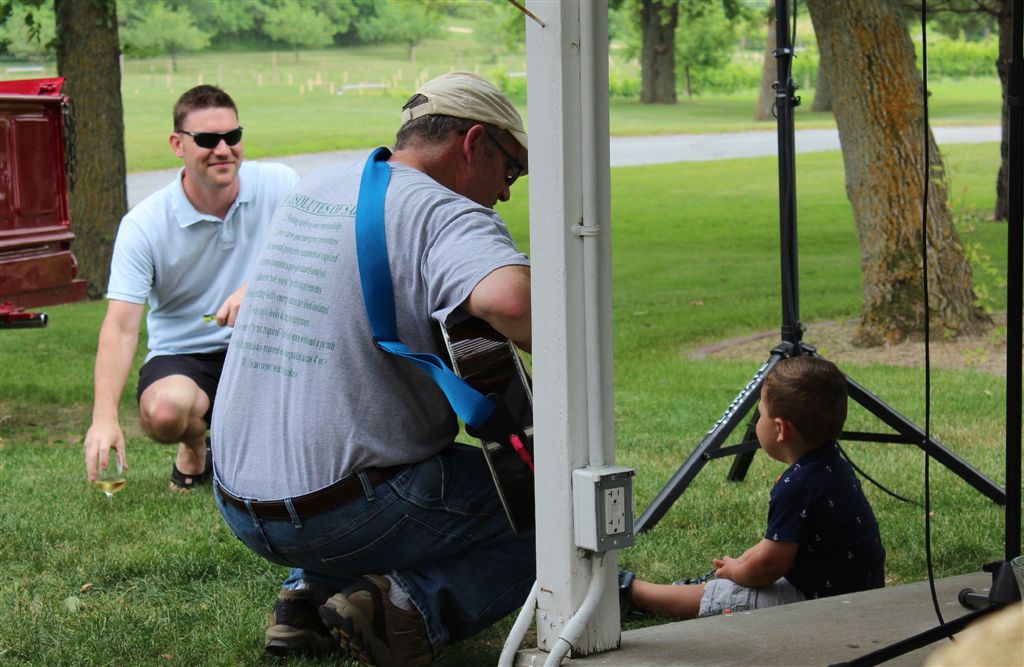 [Saturday, it was back to the winery. This time Anthony Miltich was flying solo – and occasionally by himself in the performance area as light rain drove the patrons back under the porch roof.]