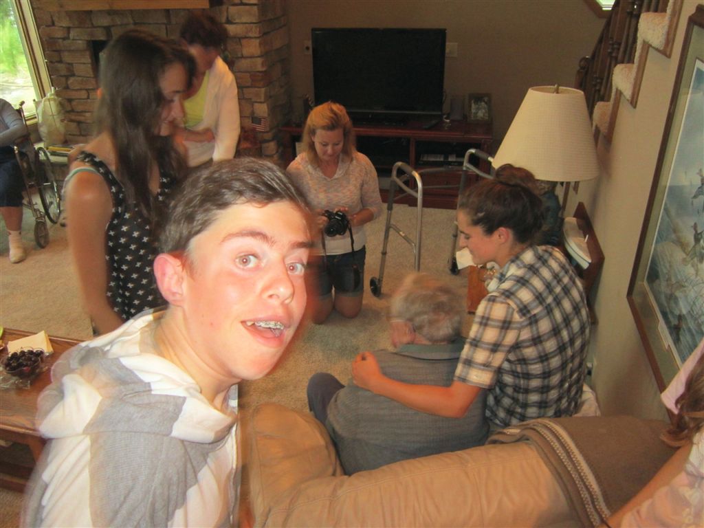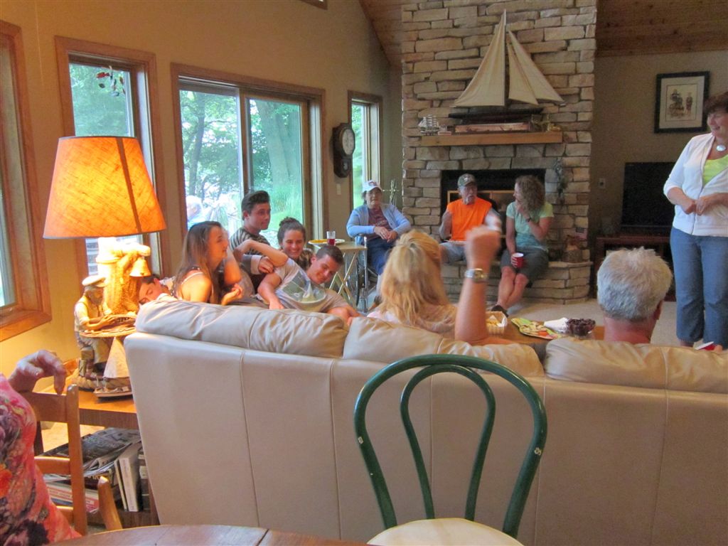 [Later Saturday afternoon, “Dangerous” Dan’s family held a welcome home party for him and invited all the neighbors in. Dan’s still recovering from major surgery and goes back to the nursing home every night for care. But he was obviously delighted to be home . . . on beautiful Lake Darling! 🙂 ]