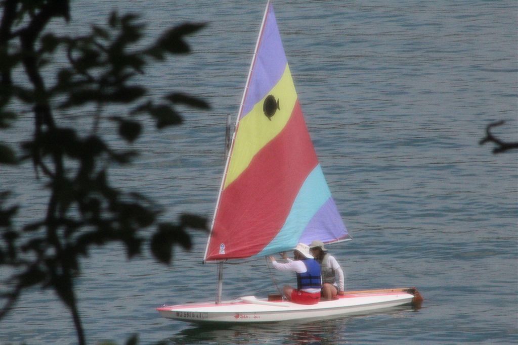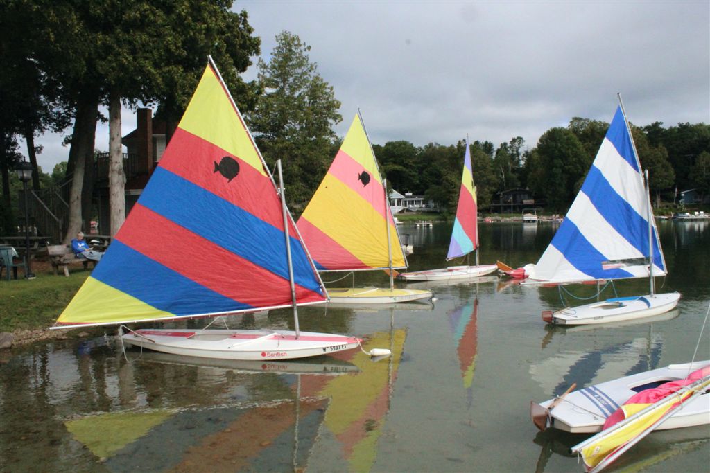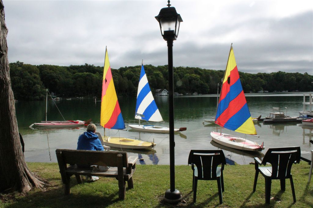 The first morning, Beth and I are, as always, first ones down to the lake. So, as is the tradition, I take her photo, sitting on the bench looking out on the sail boats.