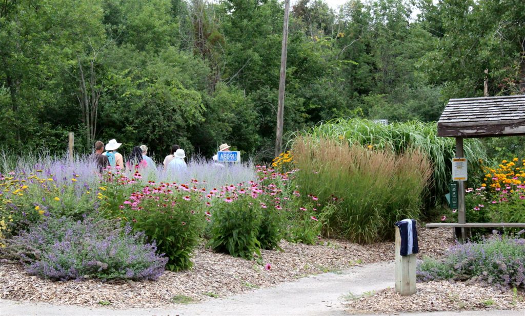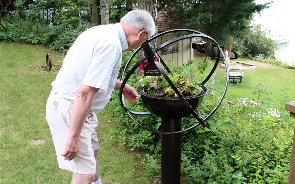 A stop to check out the kaleidoscope viewing of the flower pot. The property owners encourage walkers to do so.