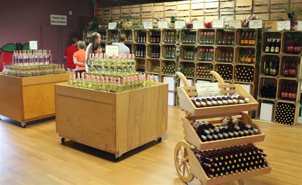 Apples make generally sweet wine. If you’re an oenophile, it has to be WAAYYYY sweet to be good (well, to our tastes). They had an apple ice wine that was probably pretty good, but it wasn’t available for sampling. It was quite a bit more expensive than the other wines.
