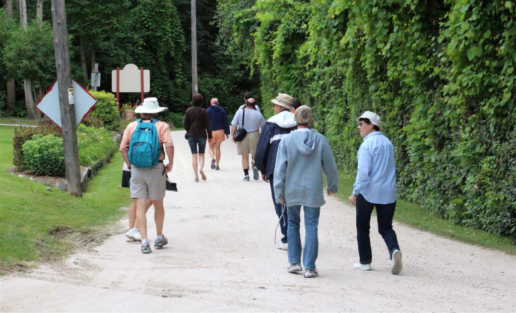This morning was the lake walk. Whoever wants to go joins in for a lovely jaunt around Elkhart Lake. It’s a good 2-hour walk. And what makes it unique is that most of the way around the path cuts through peoples’ yards right along the lakeshore. Can’t imagine that around here?