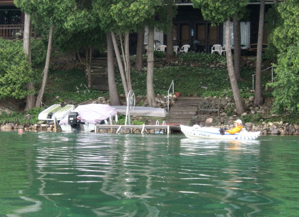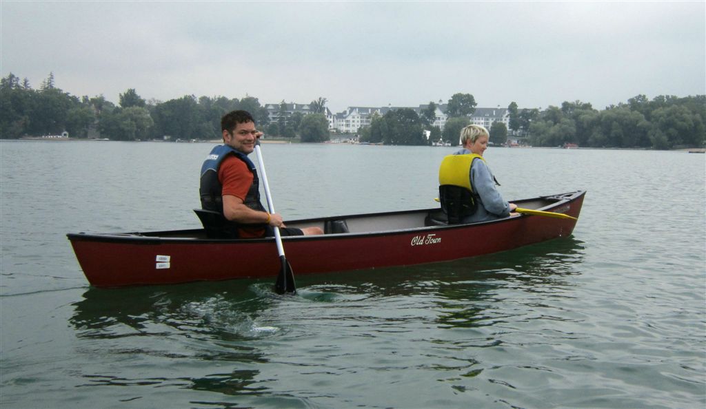 After breakfast, into the canoes! Chris and Beth into one, DOM and me into another – new canoes for camp just this year. We paddled around the lake, which takes about an hour, but didn’t quite make it off before the speedboats were allowed access. We had to hang on for dear life a few times as we were hit by boat wake.