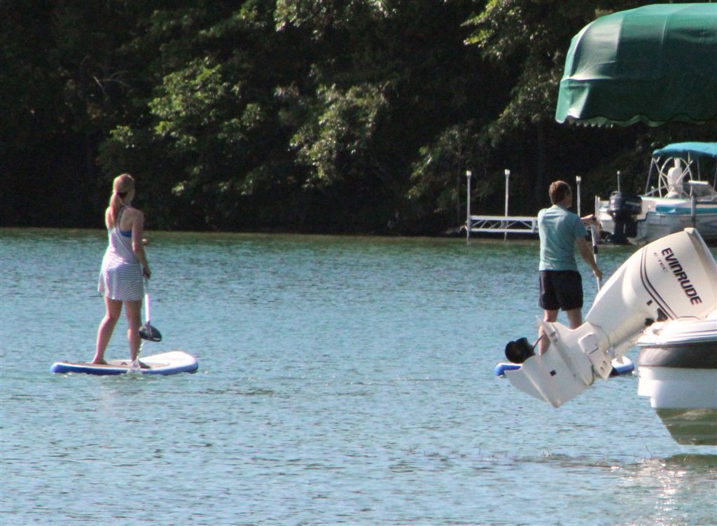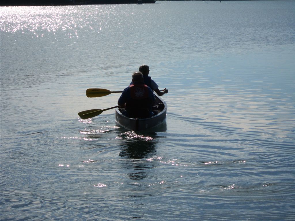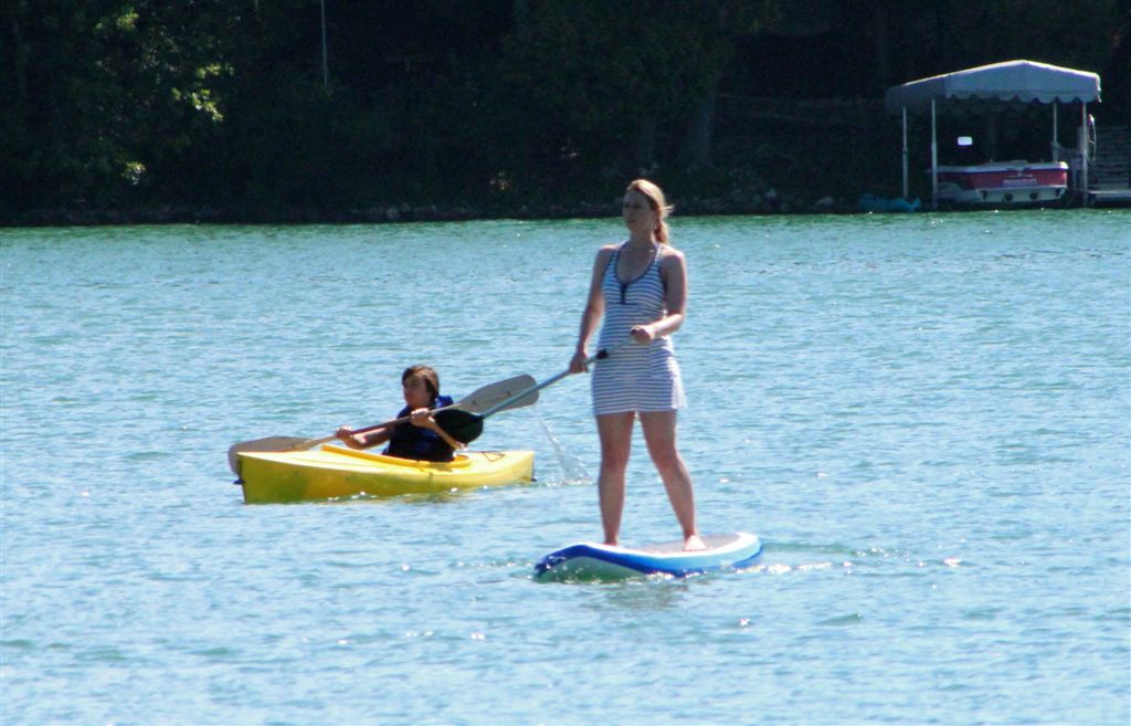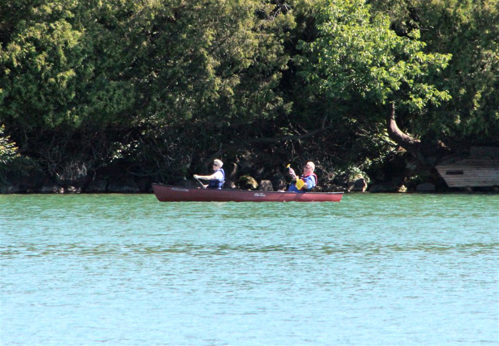[The ever intrepid Beth and DOM strike out again for another paddle around the lake. On this day instead, I believe I opted for a second helping of biscuits and gravy.]