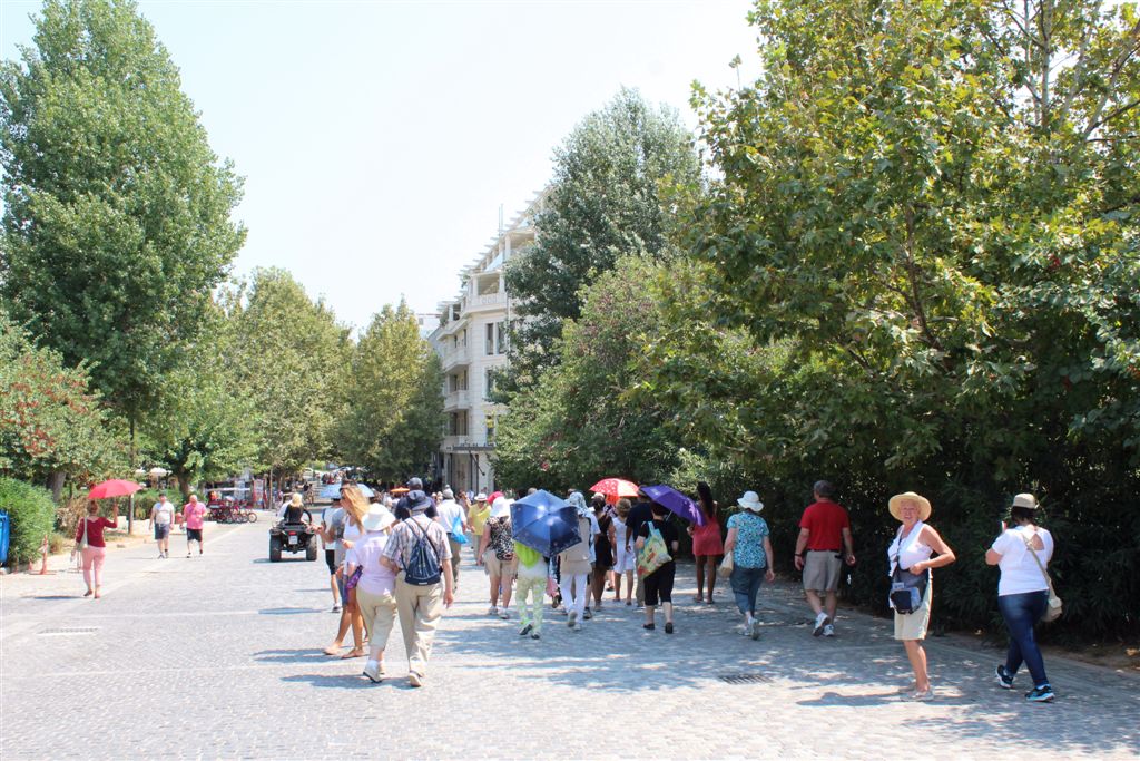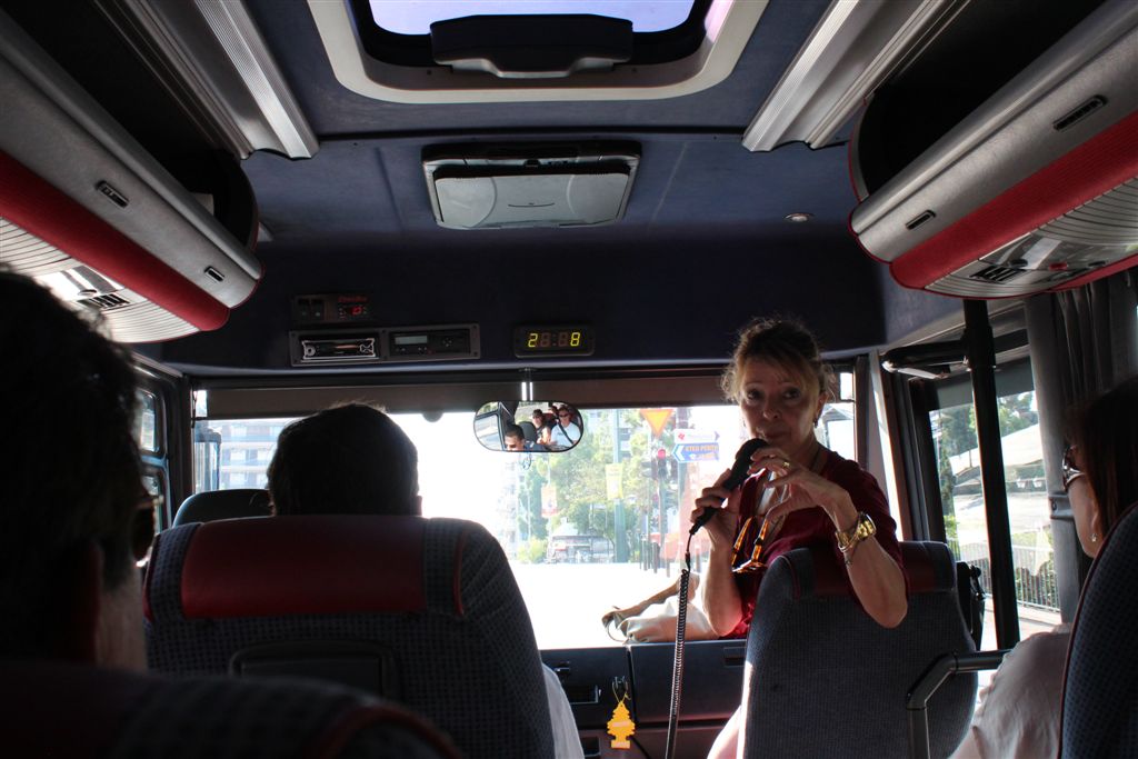[Our first guided land excursion – our guide was Christiana and our driver was Demetrius (“Jim” if that was too complicated). In Christiana’s first encounter with the group of 17, who just happened to be Chinese-Americans, she defused it nicely by saying that while the whole world describes something incomprehensible as It’s all Greek to me, she said Greeks say It’s all Chinese to me.]