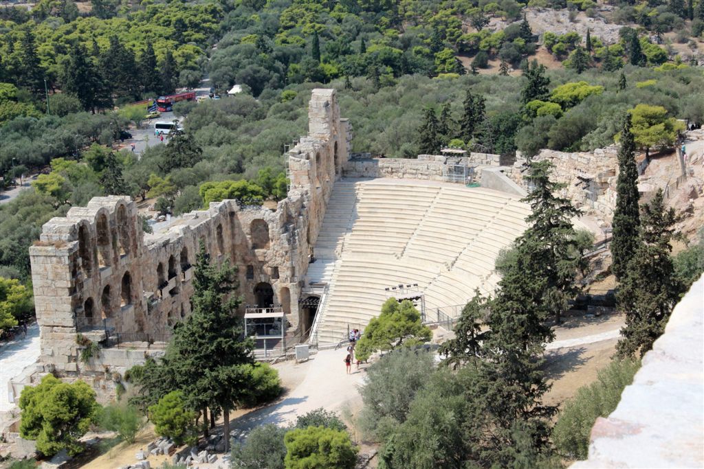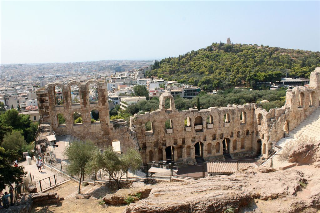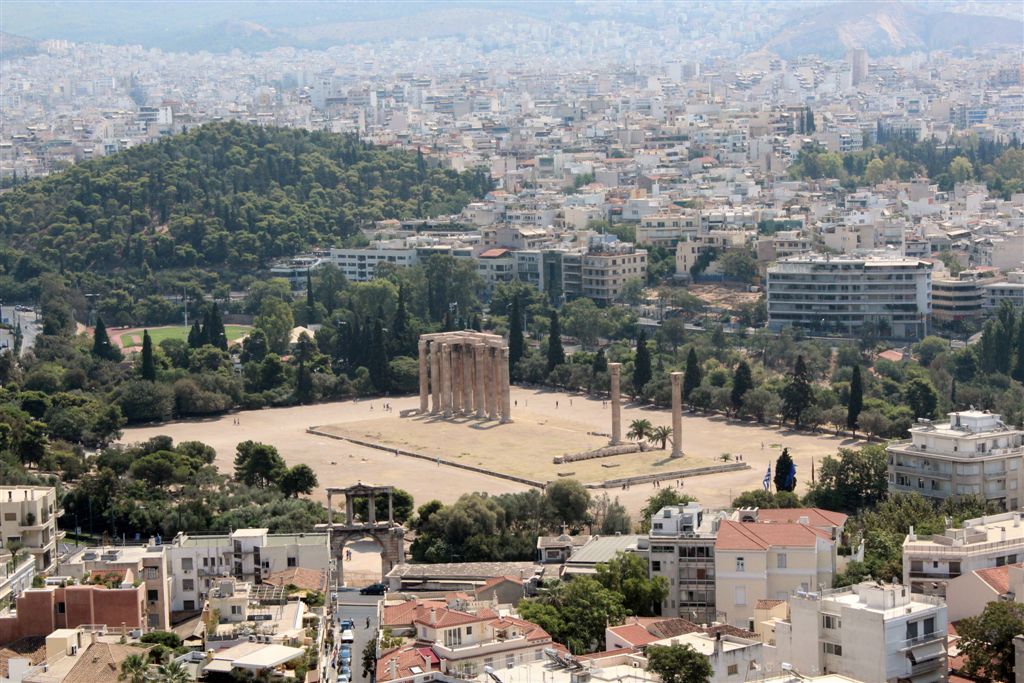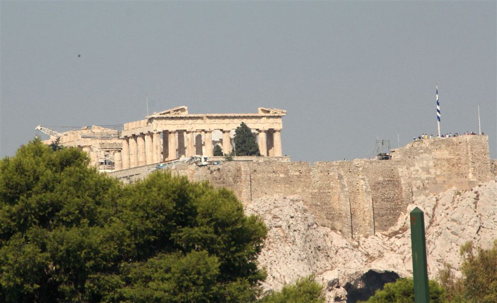 [The Parthenon from the stadium. Tourists already gathered on the far right, under the flag. Don’t get too close to the edge!]