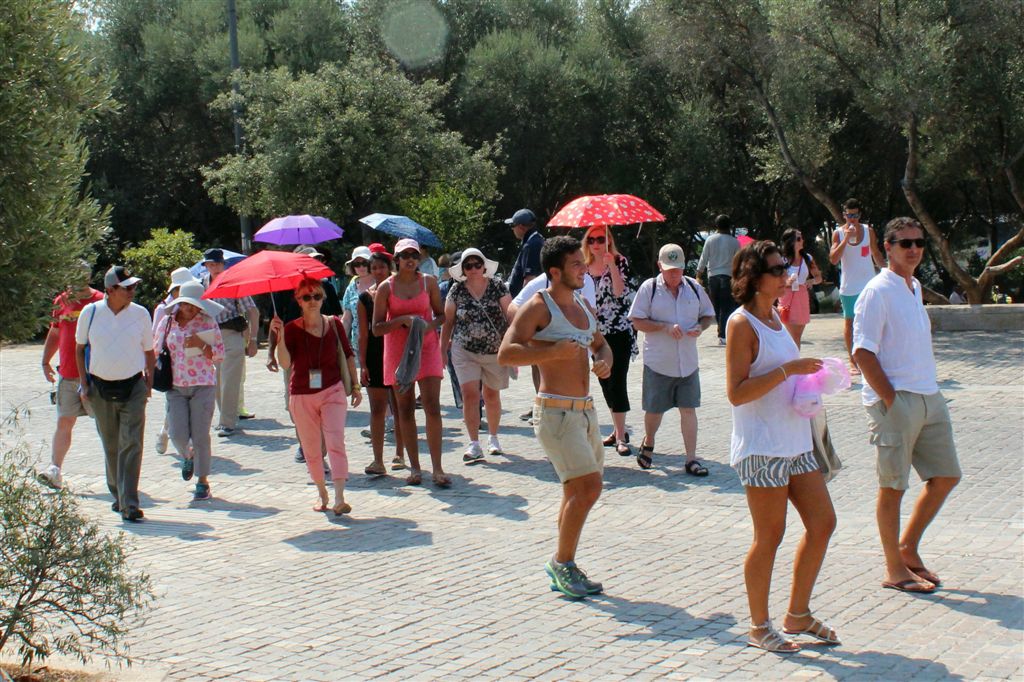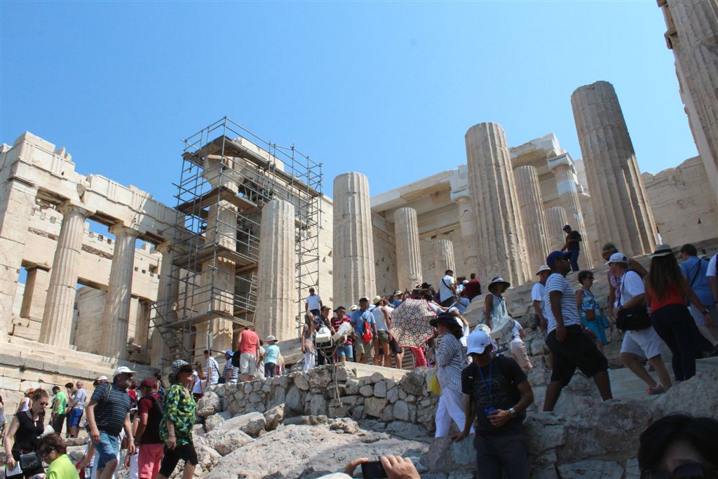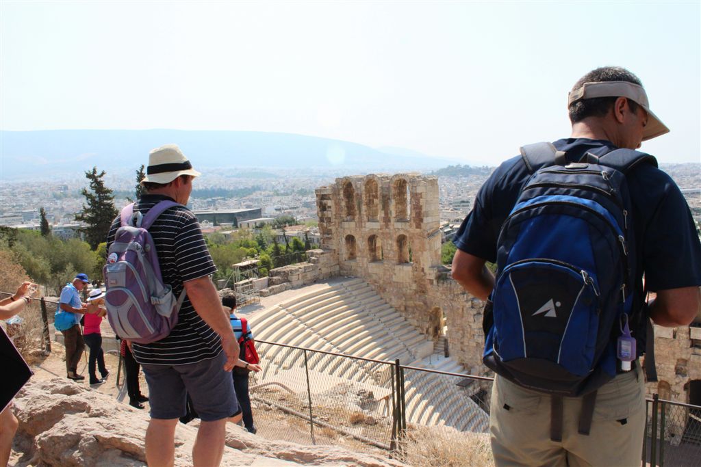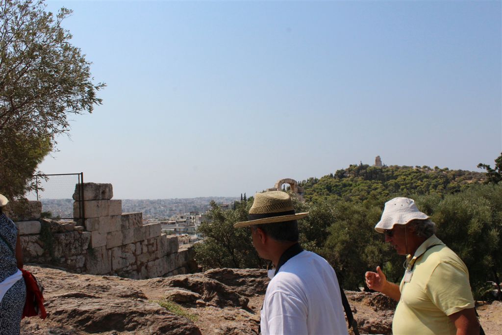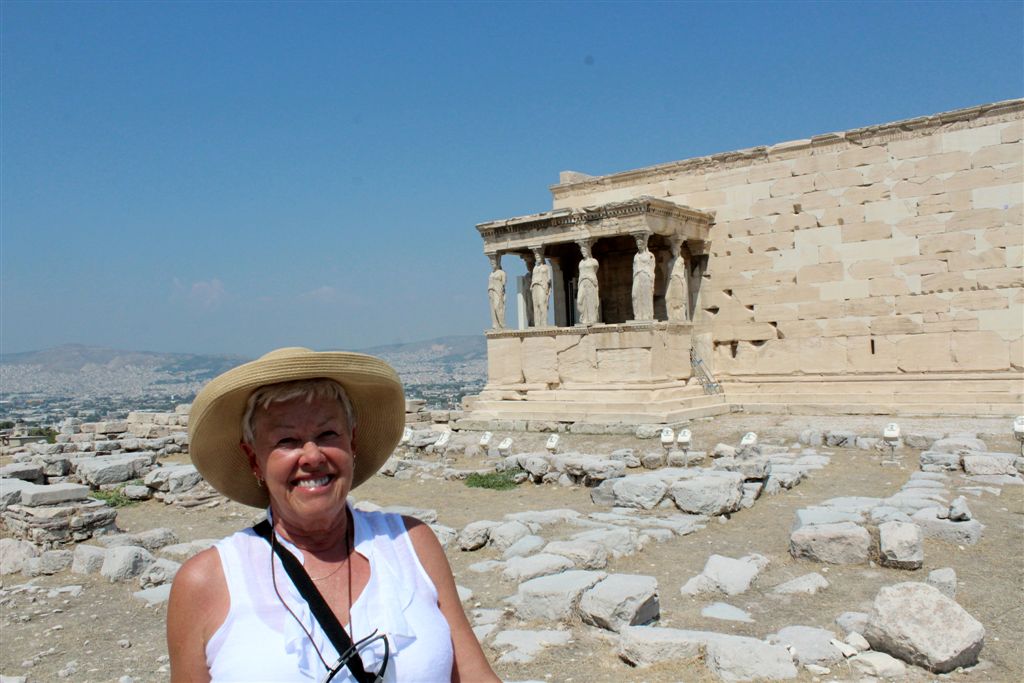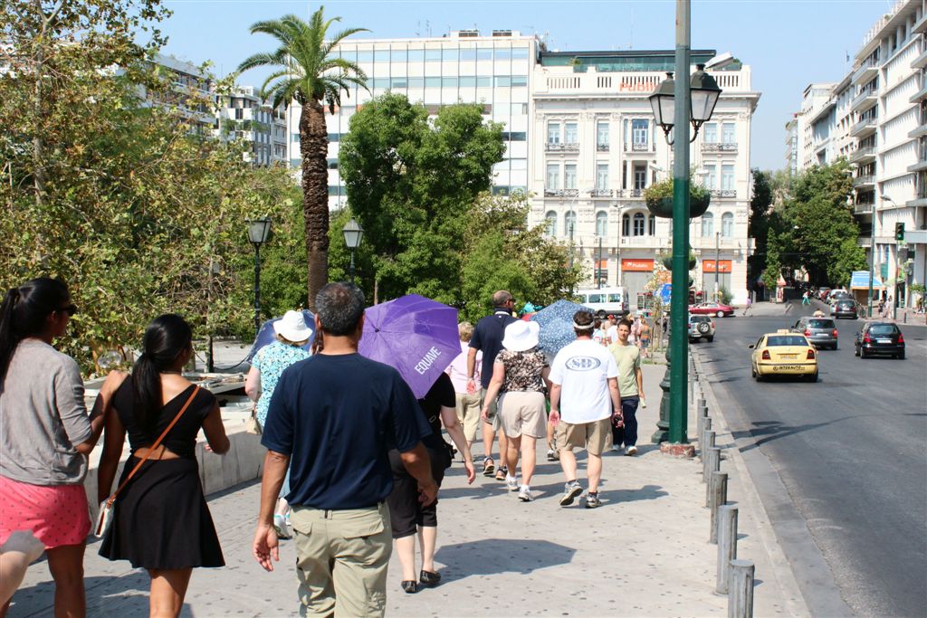 [Christiana rounds us up for an assault on the Acropolis. It’s billed as 80 steps up – that excludes the 100’s of feet of sloping walkways! Maybe if it was about 40 degrees cooler!]