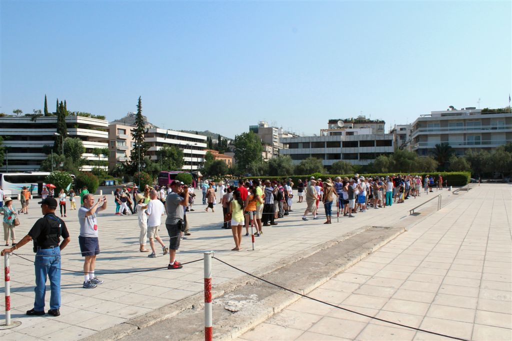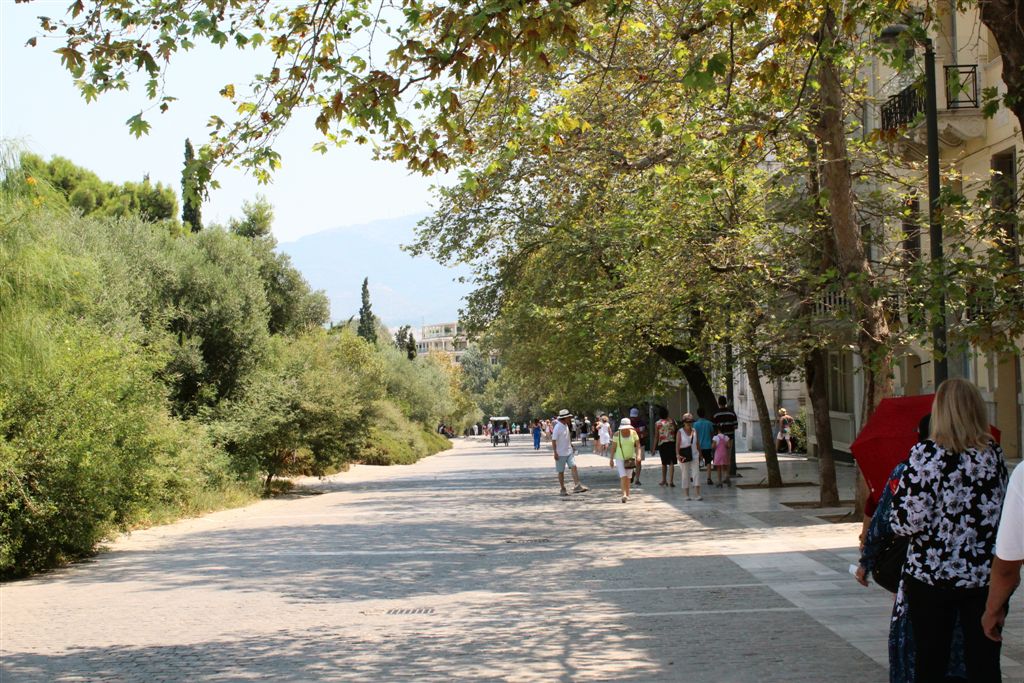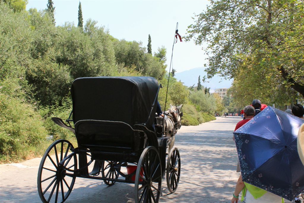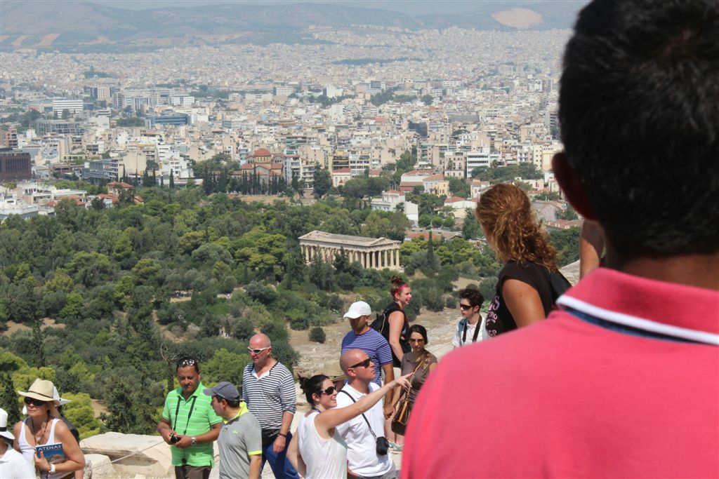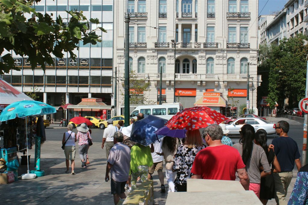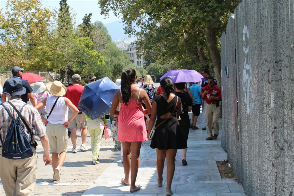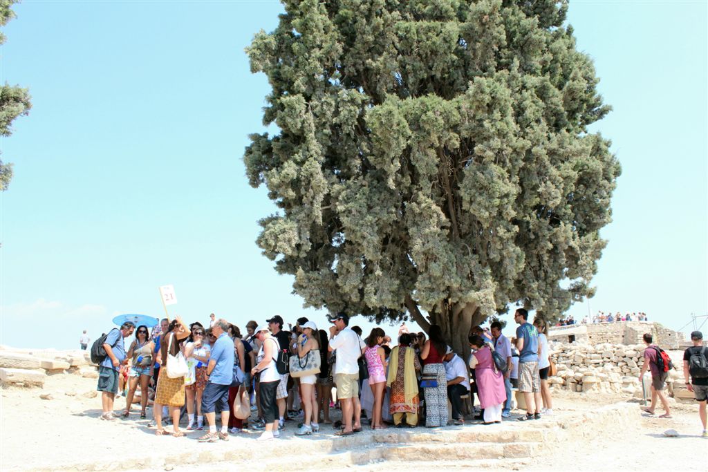 [Christiana rounds us up for an assault on the Acropolis. It’s billed as 80 steps up – that excludes the 100’s of feet of sloping walkways! Maybe if it was about 40 degrees cooler!]