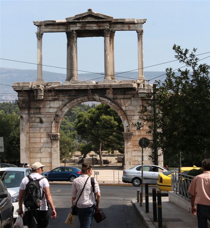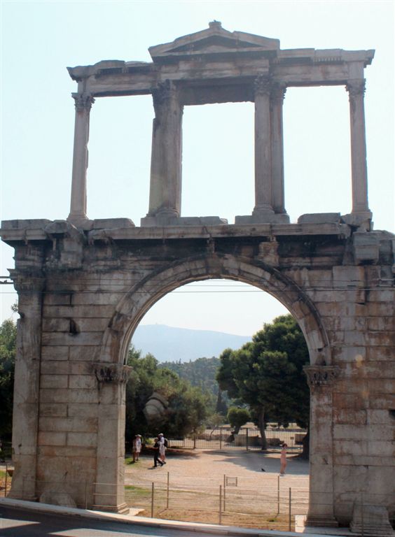 [Hadrian’s Arch, 131 AD. Roman Emperor Hadrian was noted for his peaceful reign. He did not destroy the civilizations under Rome’s control. In fact, he helped enhance beauty and architecture of such places. Thus, it seems one finds monuments to Hadrian all over this part of the world.]