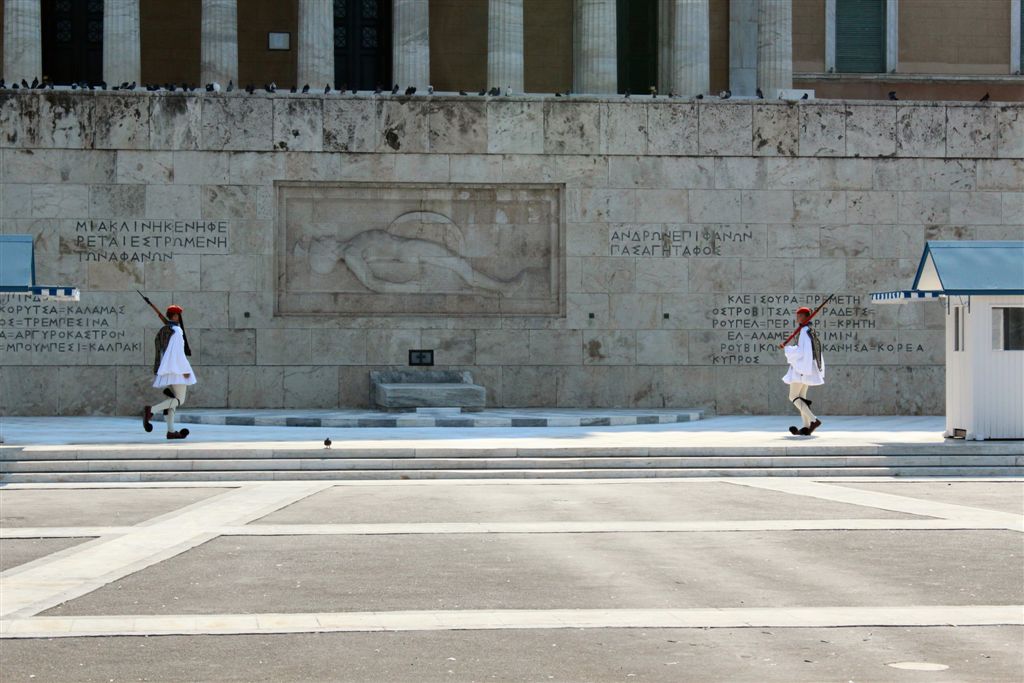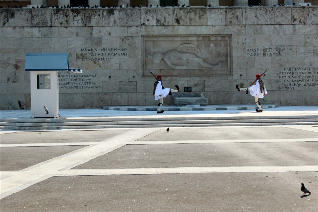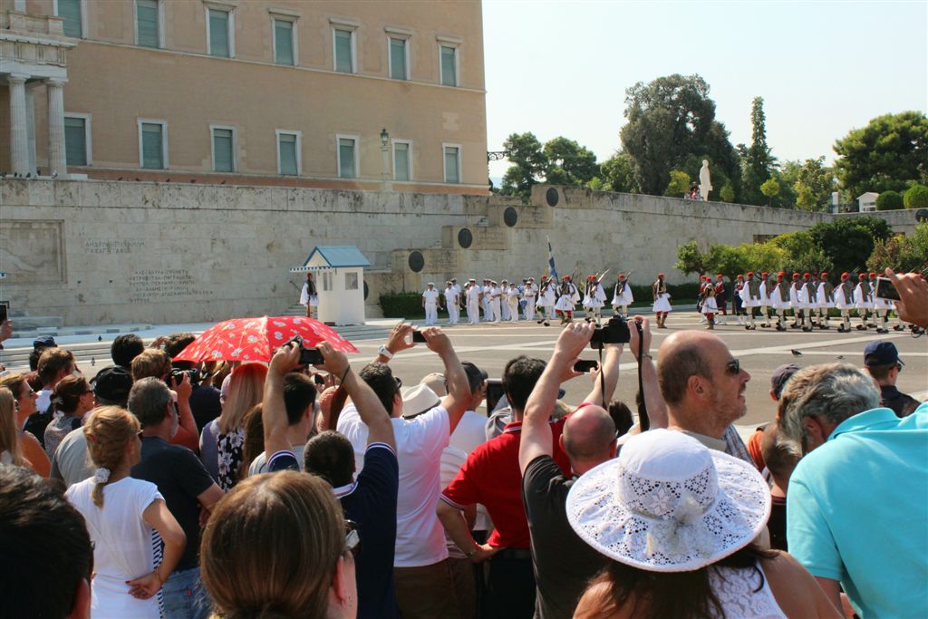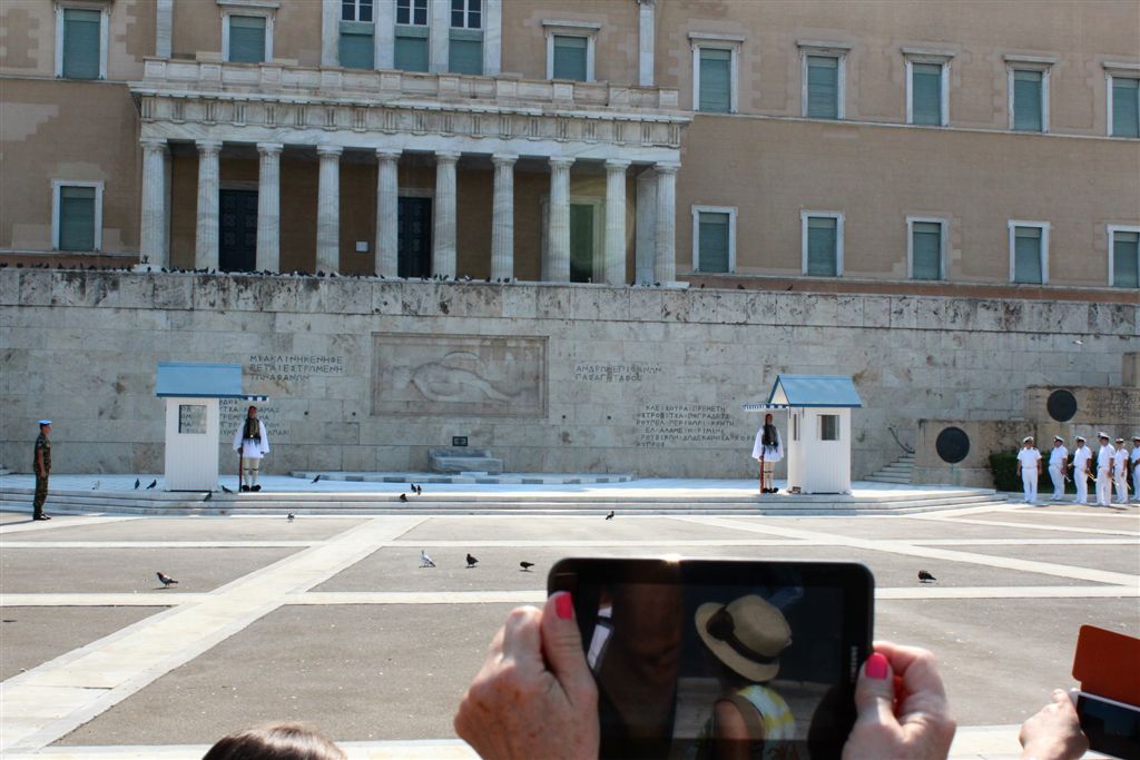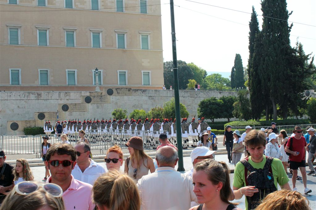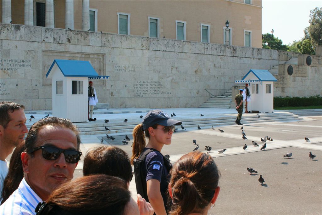 [As we were watching the Presidential Guards in front of the Tomb of the Unknown Soldier (an international recognition?), a police presence swooped in and started moving all the tourists off to the side.]