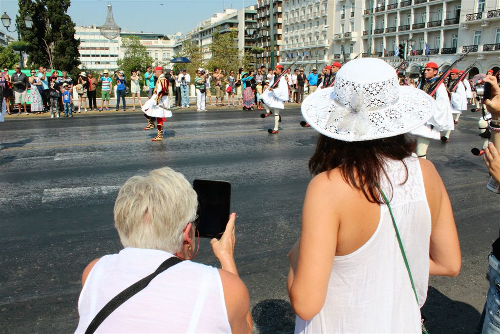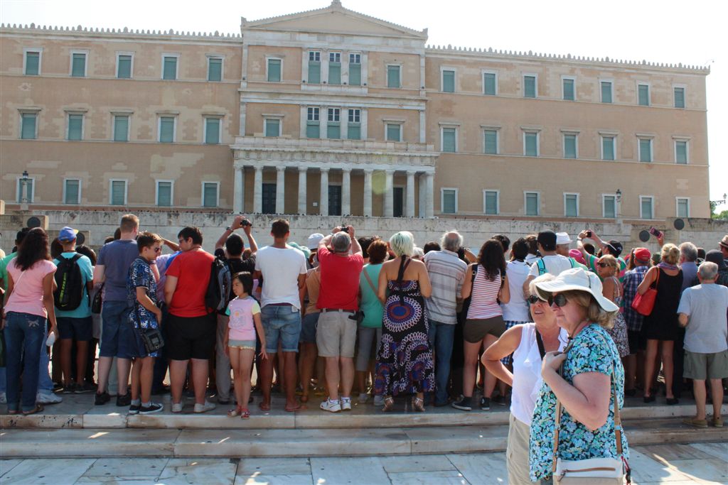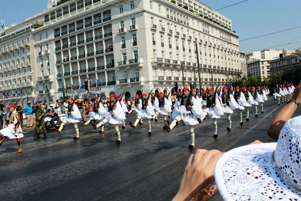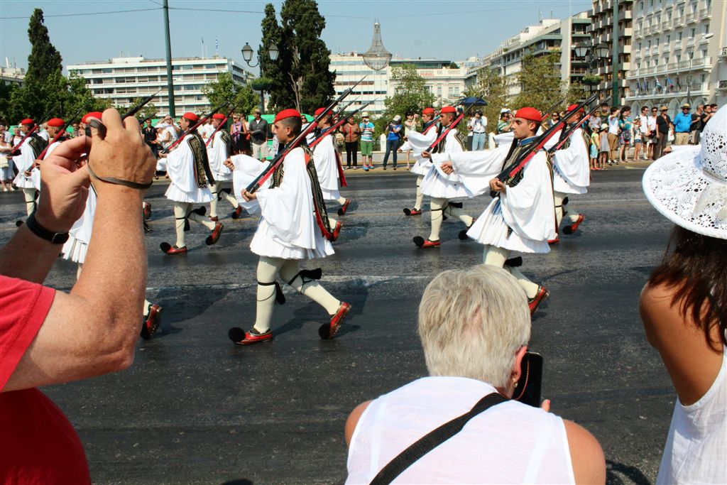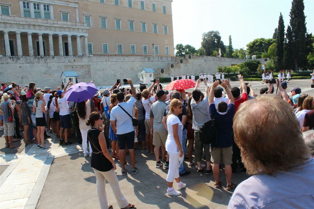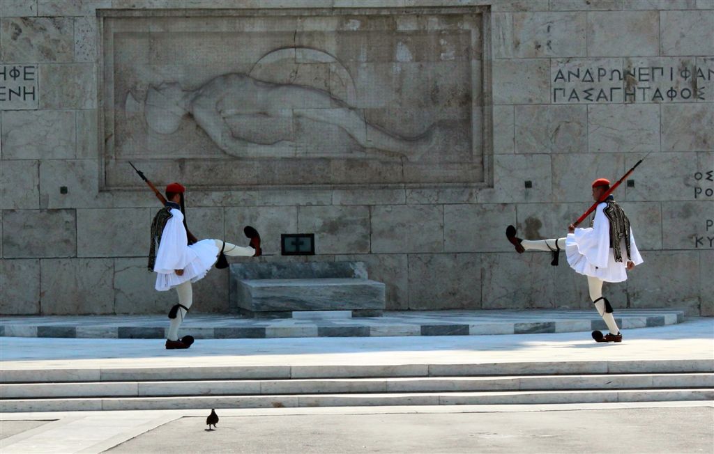 [As we were watching the Presidential Guards in front of the Tomb of the Unknown Soldier (an international recognition?), a police presence swooped in and started moving all the tourists off to the side.]