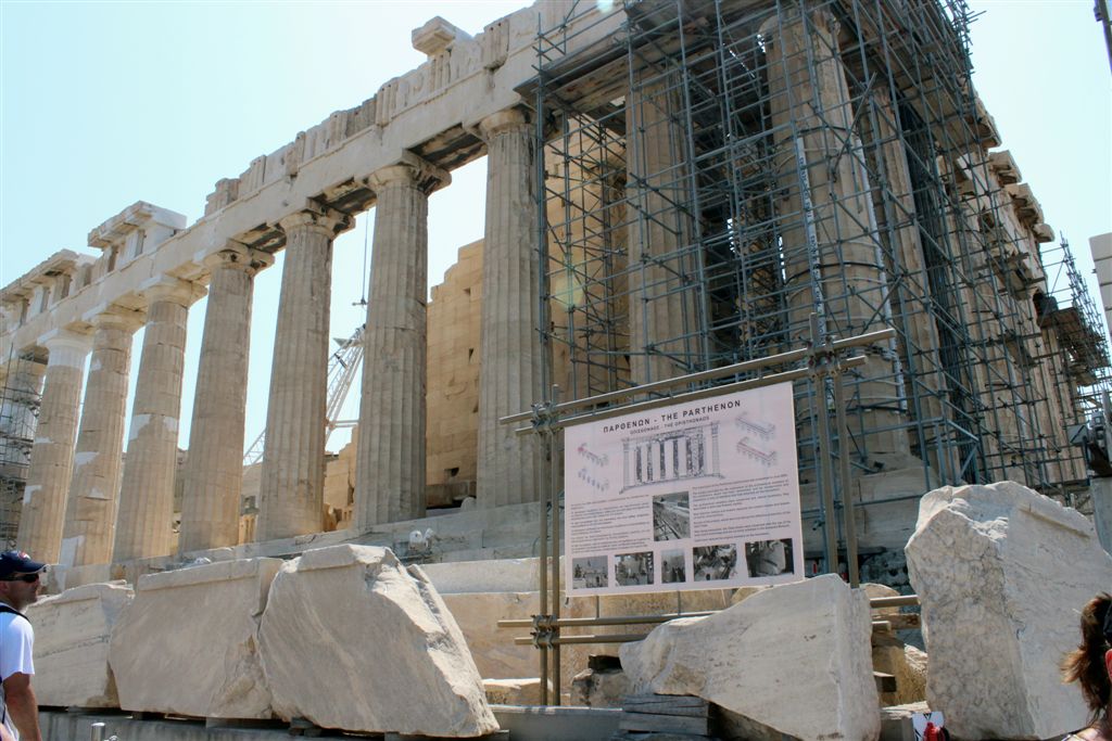[The Parthenon is undergoing a restoration that appears likely to take decades.]