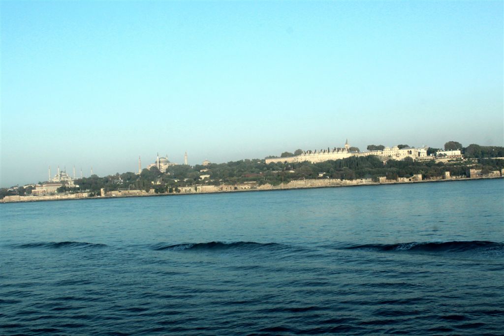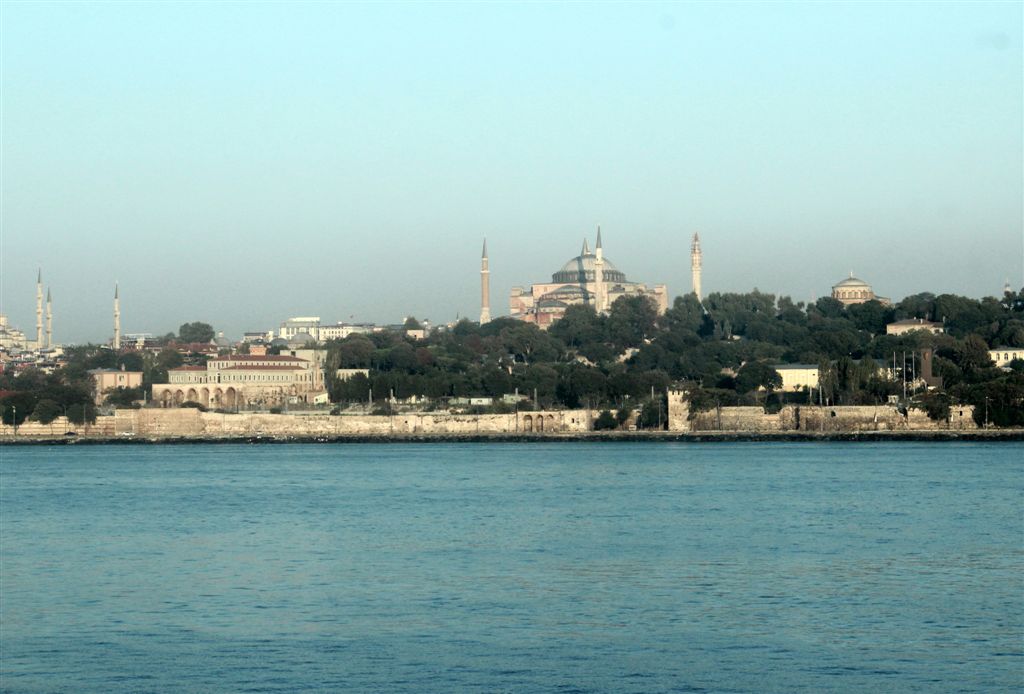 [The Blue Mosque, Ayasofya, and Topkapi, from left to right.]