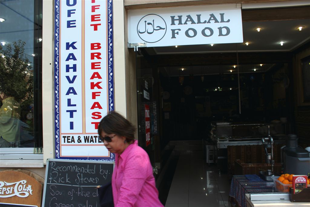 [Teri in front of the restaurant recommended by Rick Steves (from Cemil, no doubt).]
