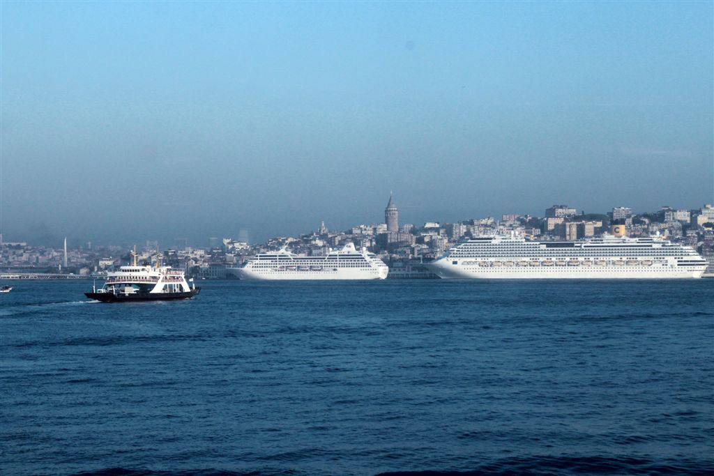 [Drat, some other ships got here first! The Galata Tower (the Tower of Christ when built in 1348) with the conical top is on the left.]