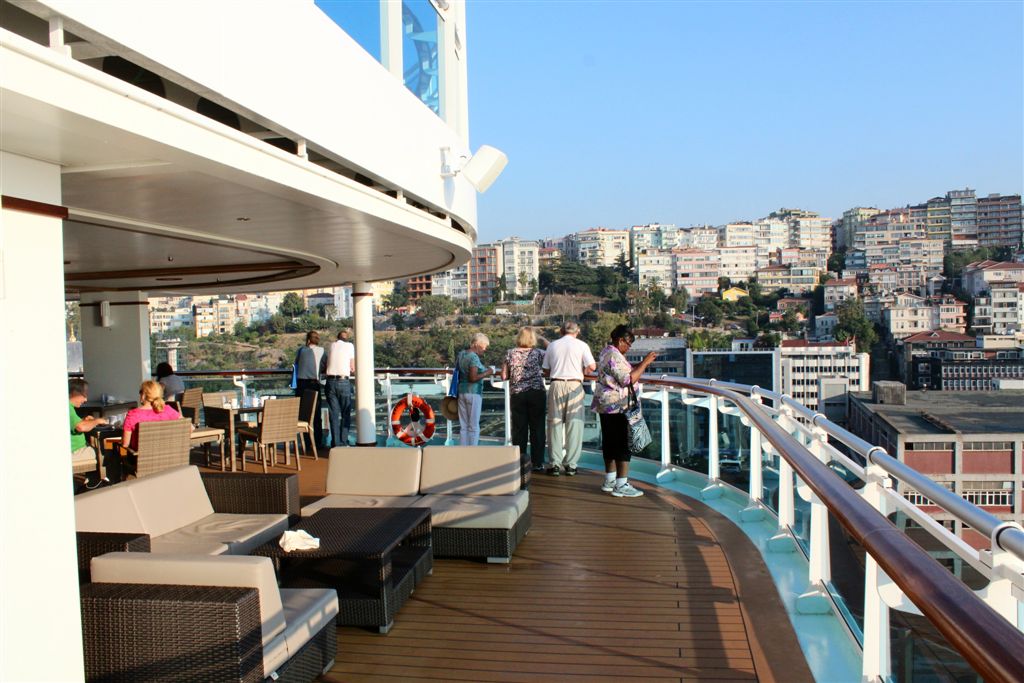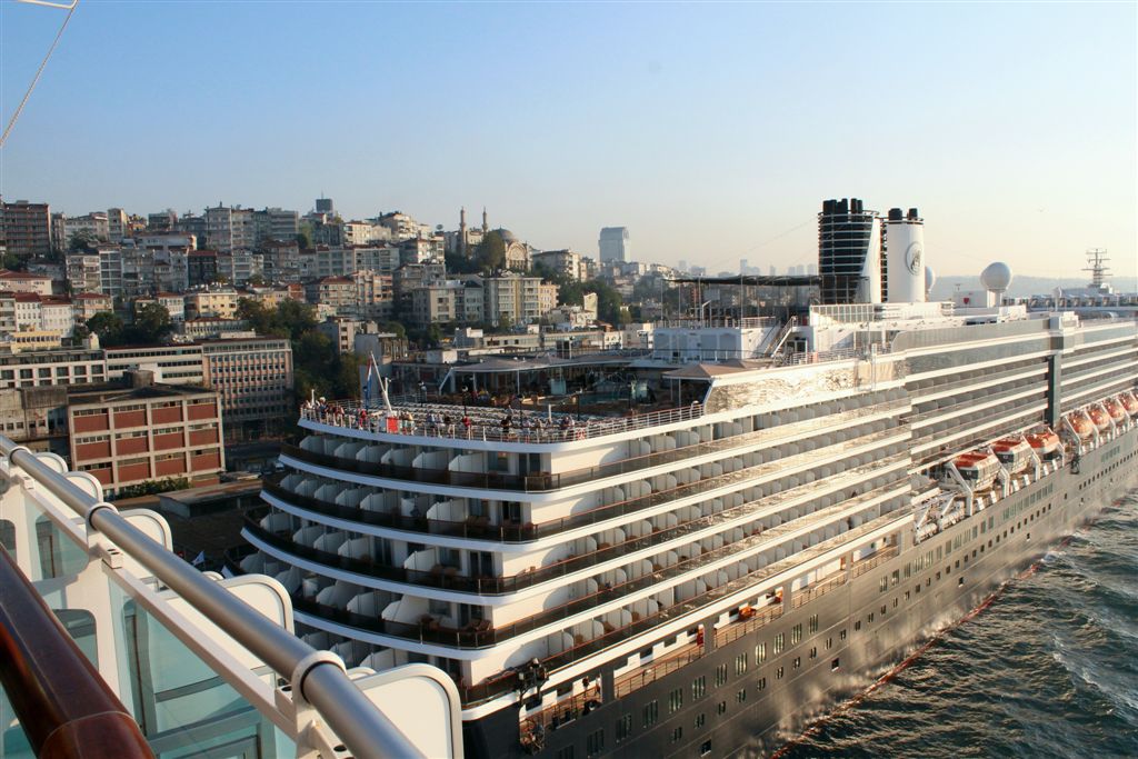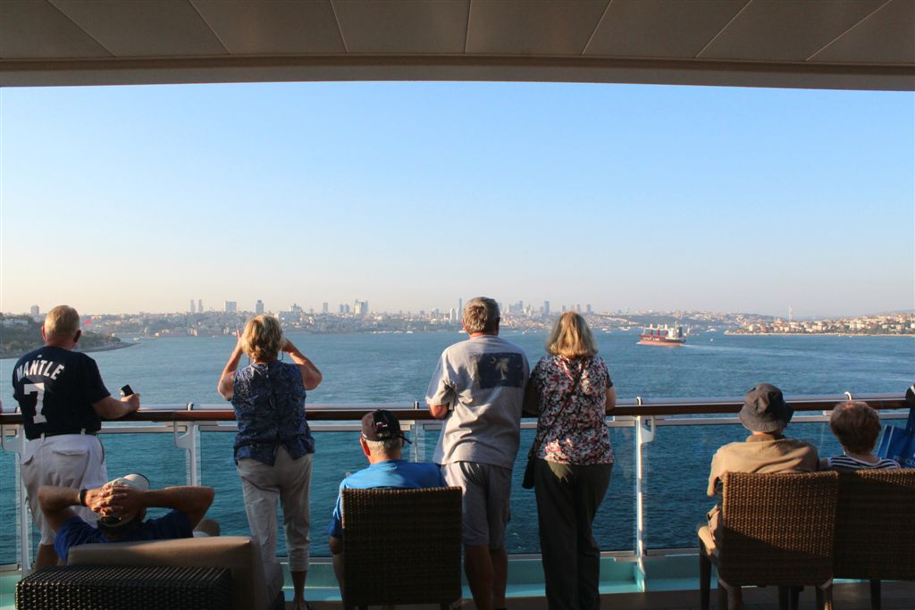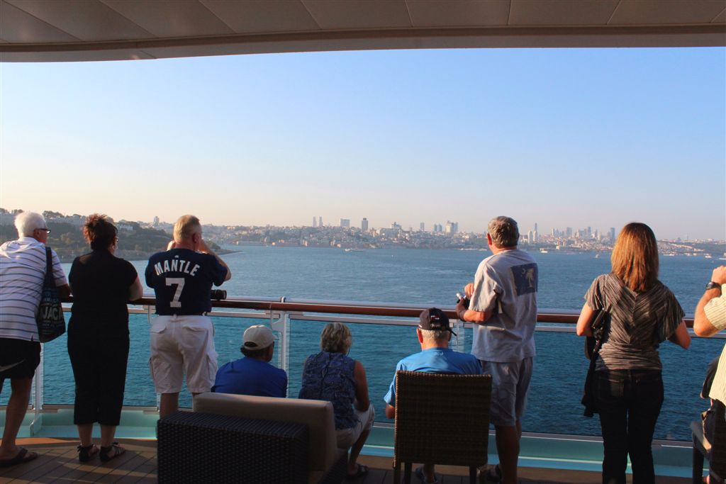 [Coming into port. So, how we got here – coming up from the south through the Aegean Sea, to the Dardenelles, then the Sea of Marmara (where we took the first photos of the mosques), and rounded the bend into the Bosphorus, which connects to the Black Sea to the north.]