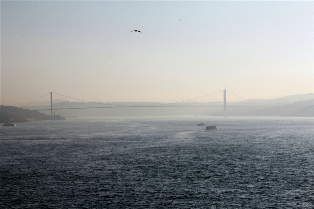 [The Bosphorus Bridge. as we head to Mykonos.]