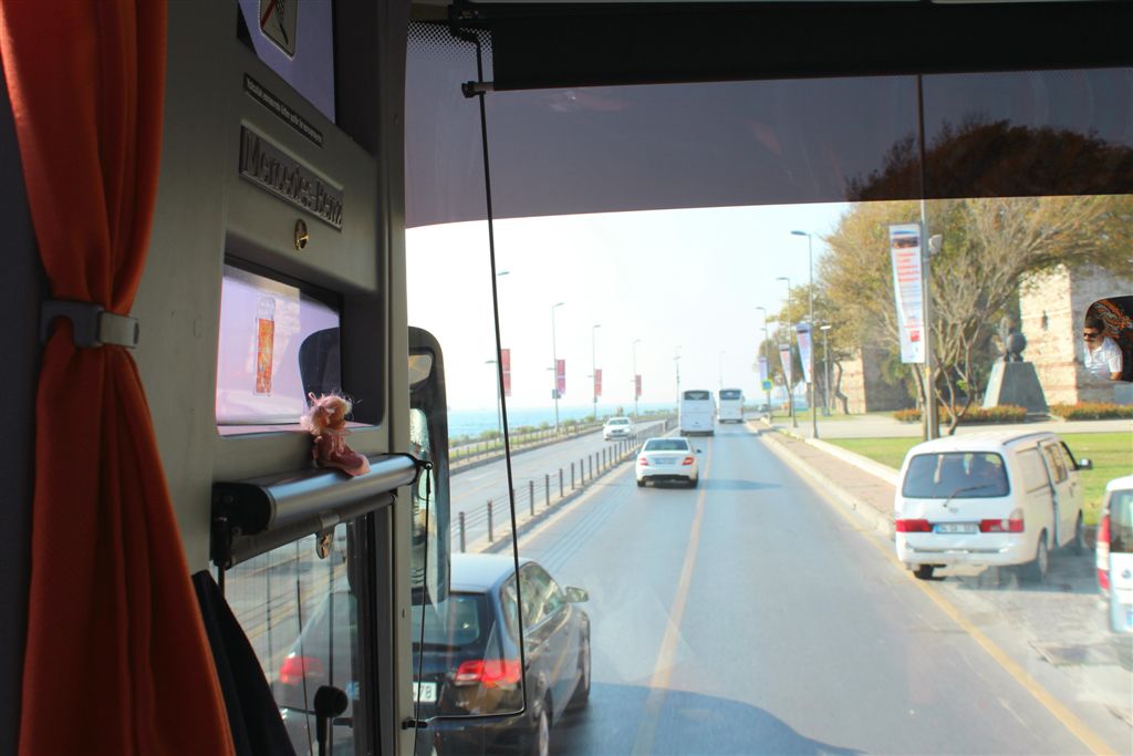 [Ashore and on the move. The Turkish tour guide asked me where I was from (a Canadian later asked me why all Americans when asked that question respond with a state – though on the trip I asked the same question of a couple who simply responded “Calgary”). I said Minnesota. He said, “Timberwolves!” It’s a small world. 😉 ]