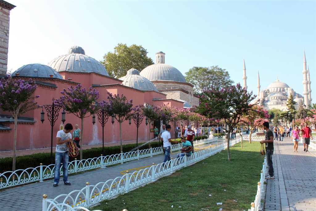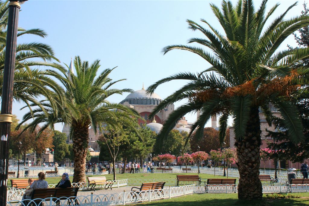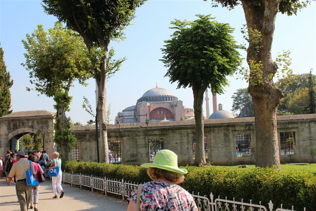 [Exiting the back door, taking the garden mall to Ayasofya, upper center of the photo.]