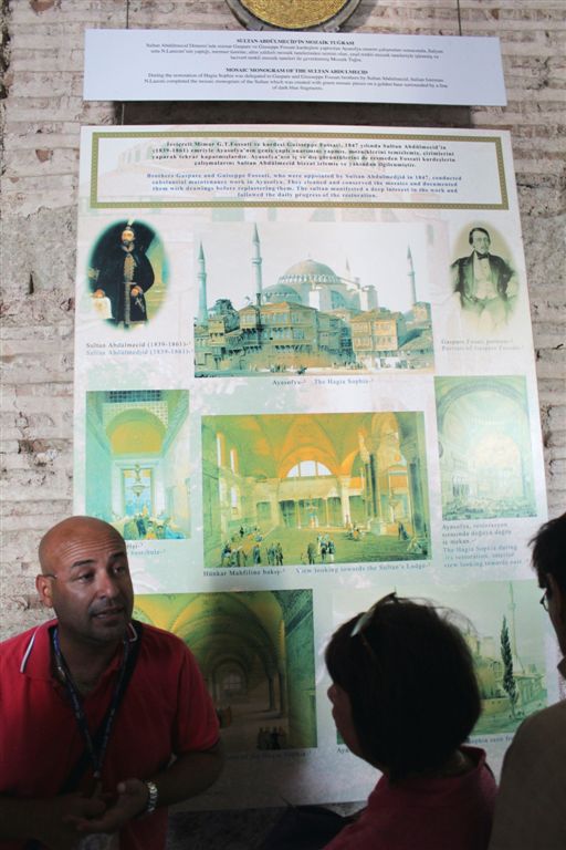 [And here’s our guide, Cemil (ja-MEAL), explaining what we’re going to see inside. He lived in Toronto for 9 years; thus, his English was better than ours! 🙂 He is also a guide used by Rick Steves and leads tours all over Turkey.]
