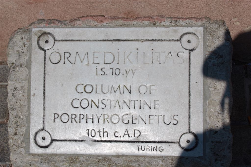 [The only known (in Turkey?) example of a teardrop column. They don’t know where it came from?]