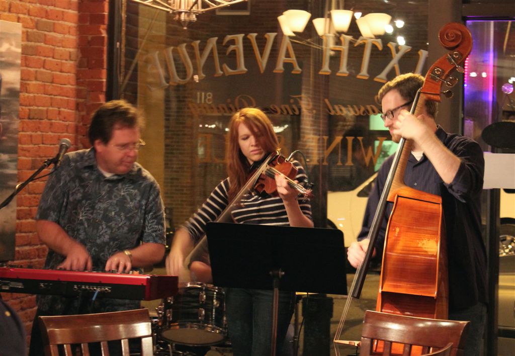 [We go for the music. Here’s the Mel Lamar Trio w/ Bill and Eric, on the Marquette Stage.]