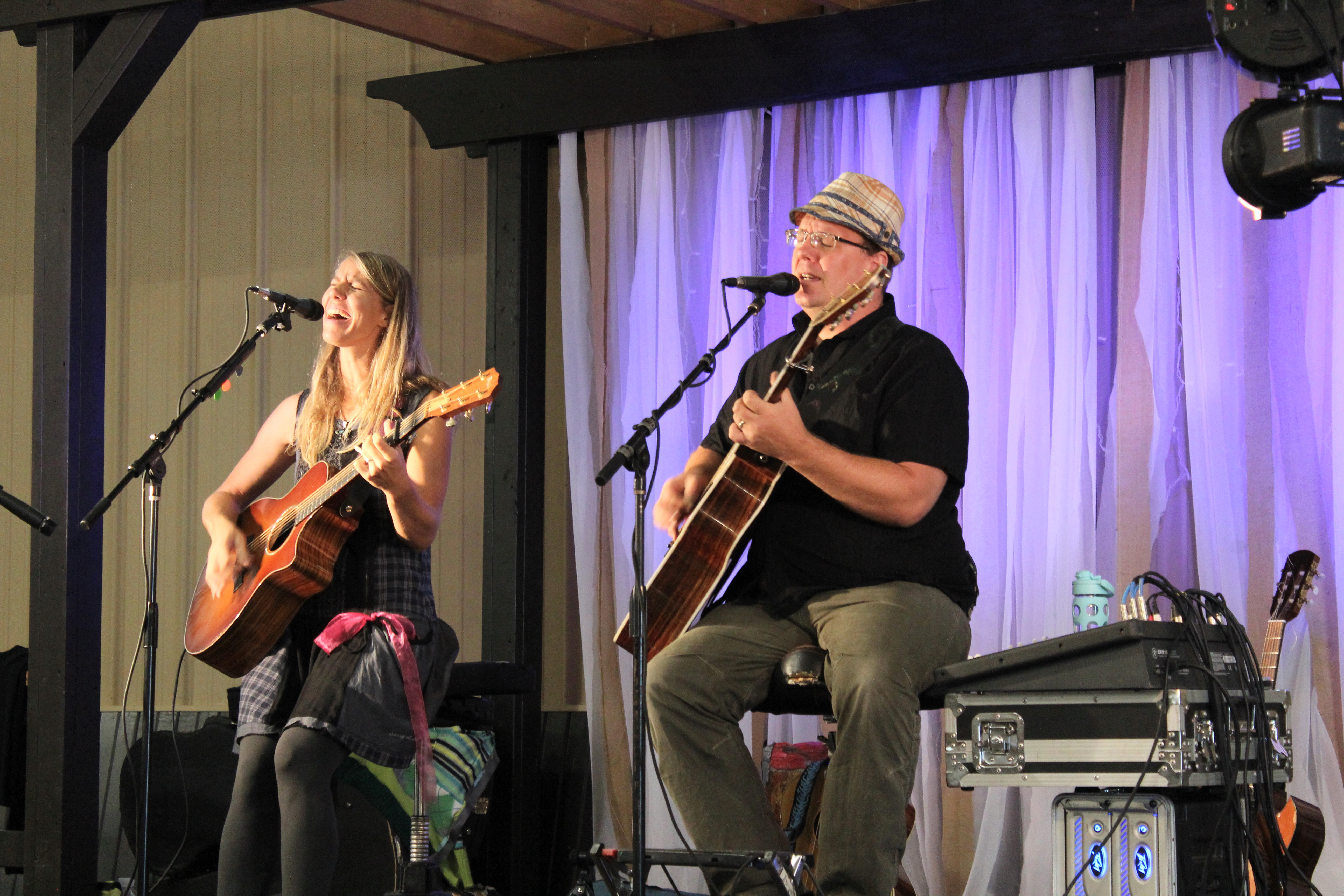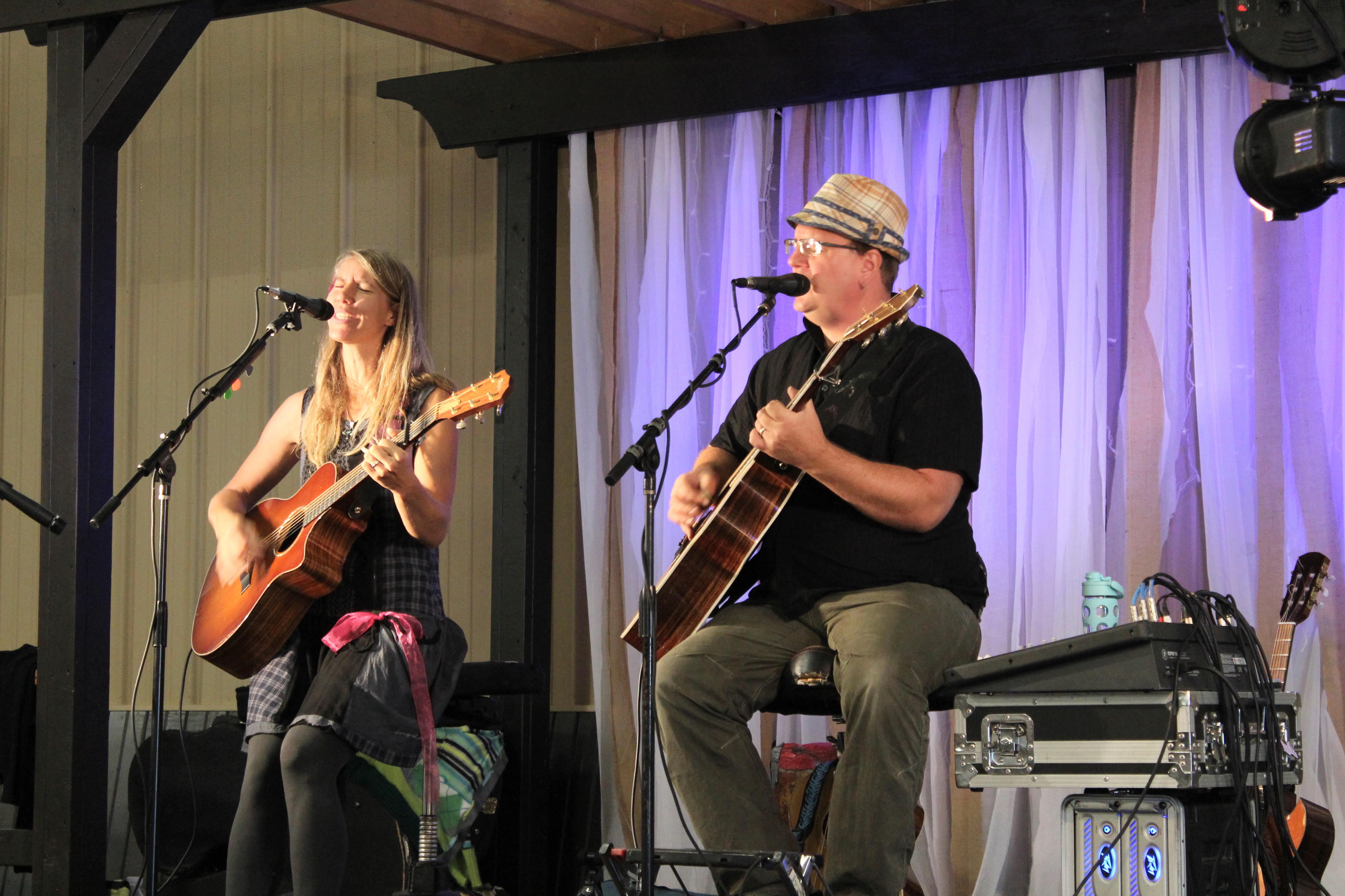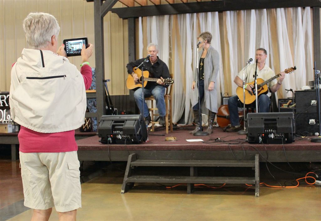 [There was music at several venues, including the Marquette Stage outside where Josie Nelson was part of an hourly rotation. We hoped to rotate out there as well. Inside, the big place (the old hippodrome) hosted Harper’s Chord (above, shot by the supervisor and immediately posted on Facebook), Uncle Willie’s Gut Bucket Blues Band, and a young bluegrass group. As early arrivers, and before the rain began, we staked out a front row table. When the rain began, everyone who had been outside perusing the vendors and such flowed into our arena until it was packed. We couldn’t leave or we’d never get our seats back. The crowd made it quite a party – but way to noisy for videos.]