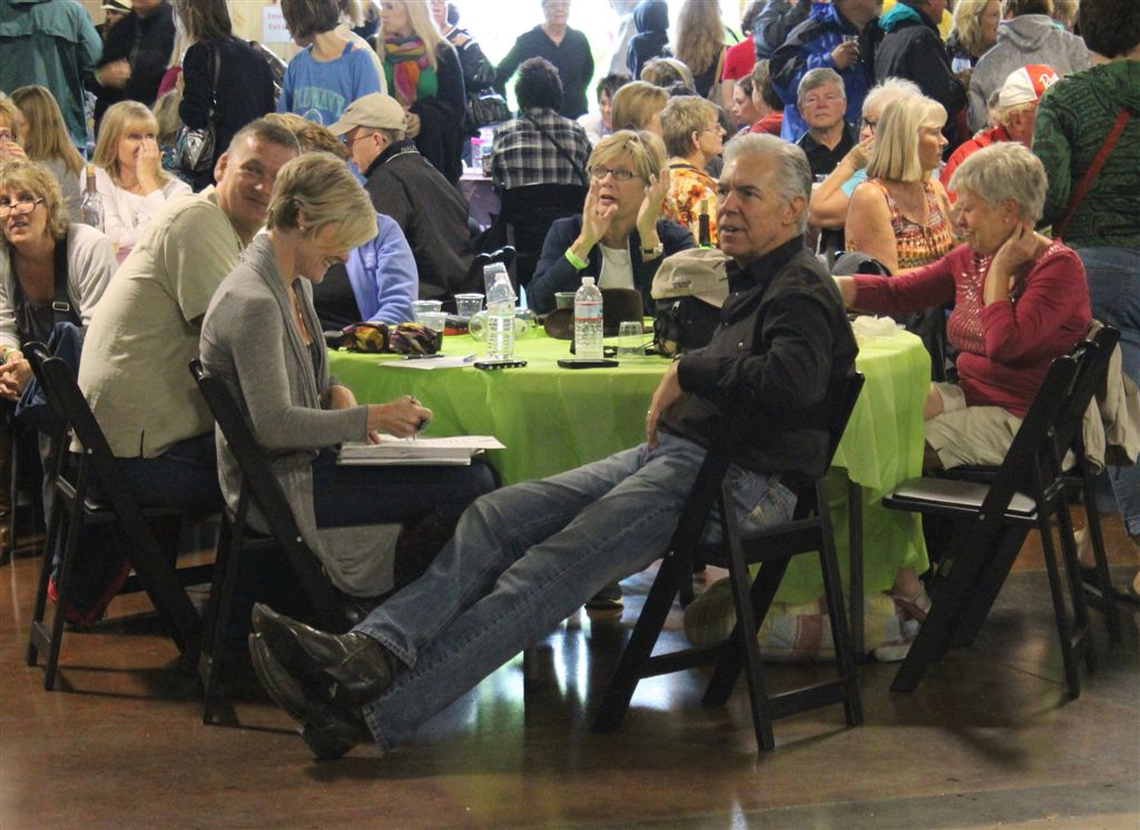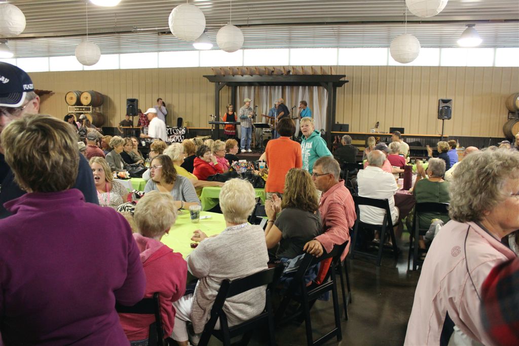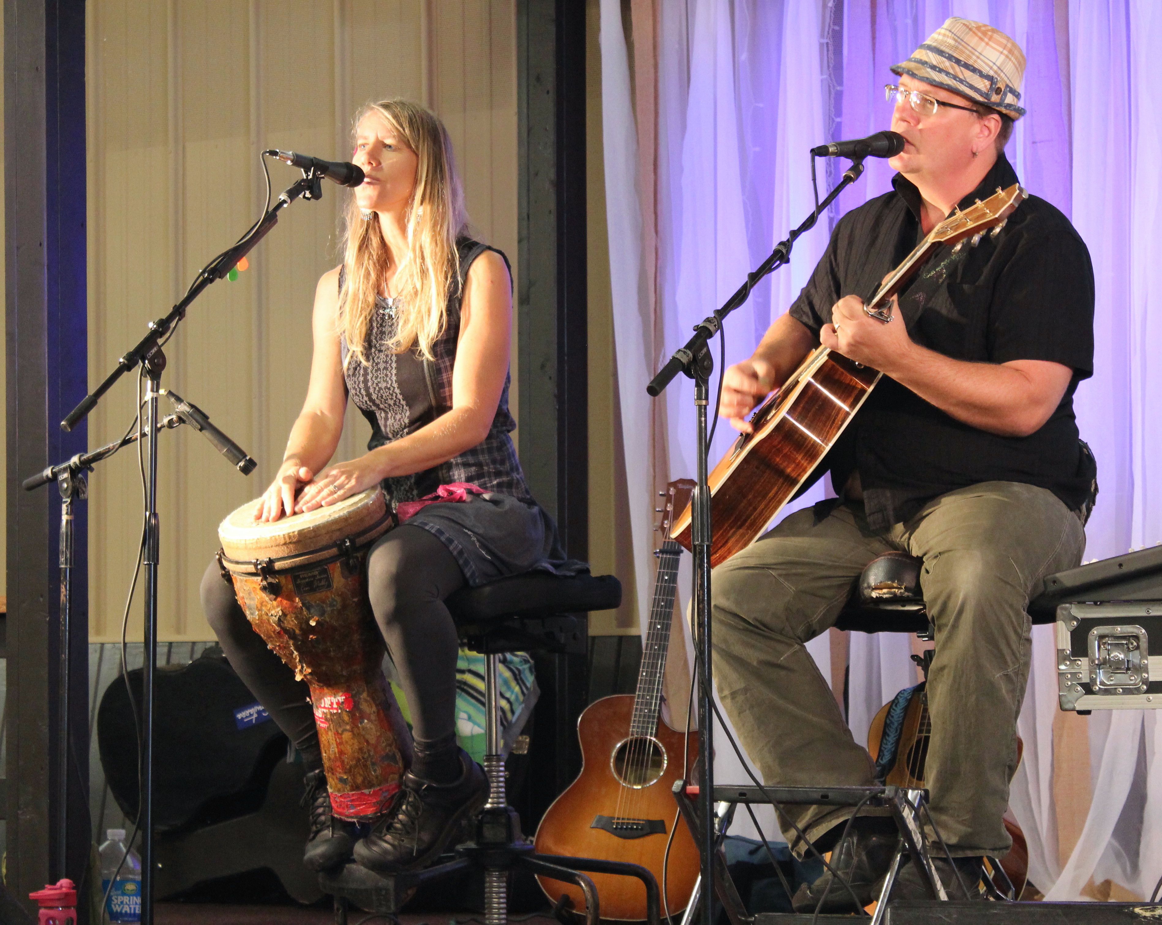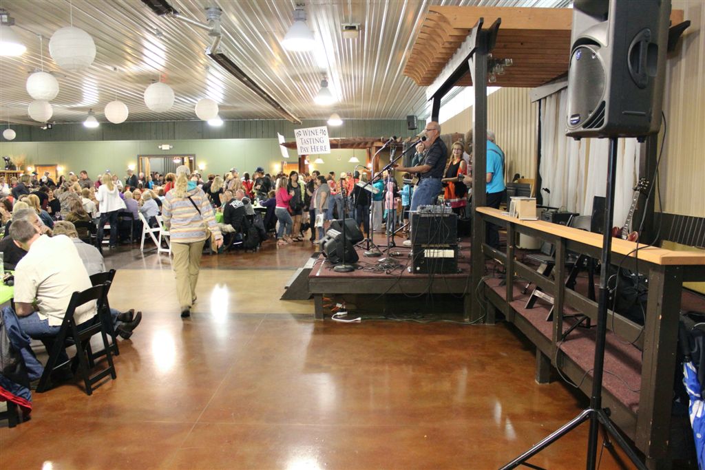 [There was music at several venues, including the Marquette Stage outside where Josie Nelson was part of an hourly rotation. We hoped to rotate out there as well. Inside, the big place (the old hippodrome) hosted Harper’s Chord (above, shot by the supervisor and immediately posted on Facebook), Uncle Willie’s Gut Bucket Blues Band, and a young bluegrass group. As early arrivers, and before the rain began, we staked out a front row table. When the rain began, everyone who had been outside perusing the vendors and such flowed into our arena until it was packed. We couldn’t leave or we’d never get our seats back. The crowd made it quite a party – but way to noisy for videos.]