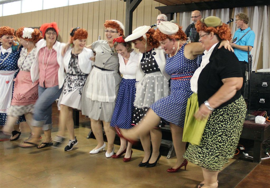 [Then the Lucys arrived – don’t know from where – but there seemed to be dozens of them. An annual event at the Stomp is the Lucy Look-A-Like contest.]