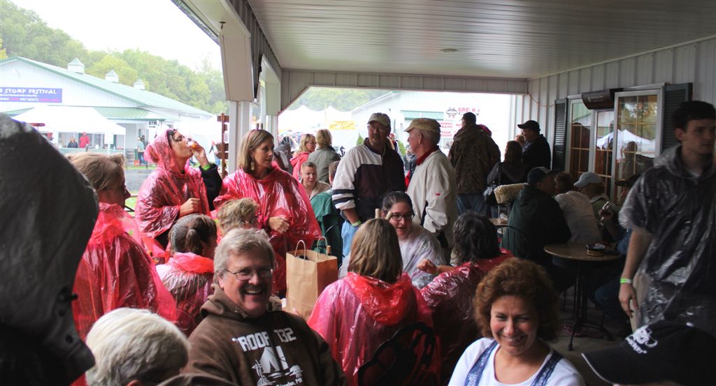 [The came Saturday, and the Stomp’s annual weather hex took hold. It had not rained here since . . . well, a really long time. We were in drought conditions, again. The forecast for Saturday was for possible isolated thunderstorms. Of course, it started to rain around noon . . . and never stopped! How to end a drought? Start a grape stomp!]