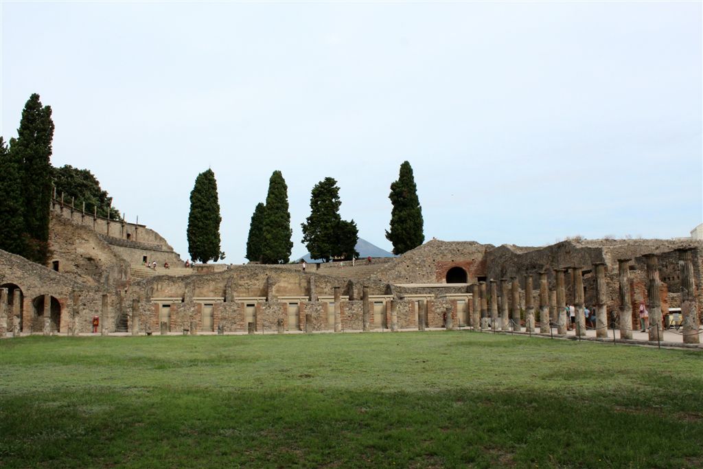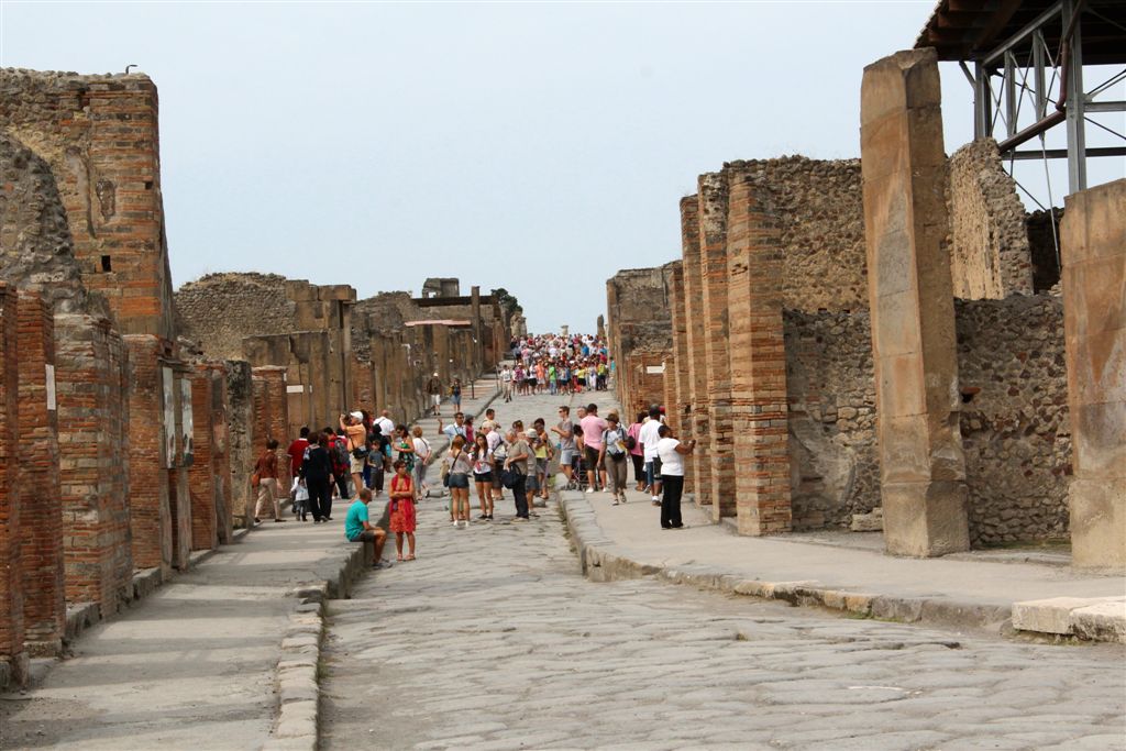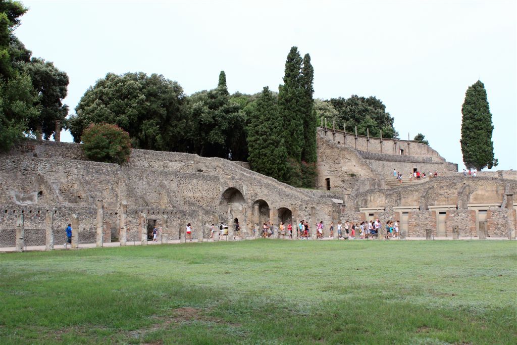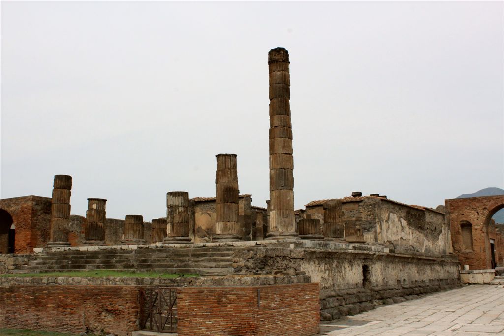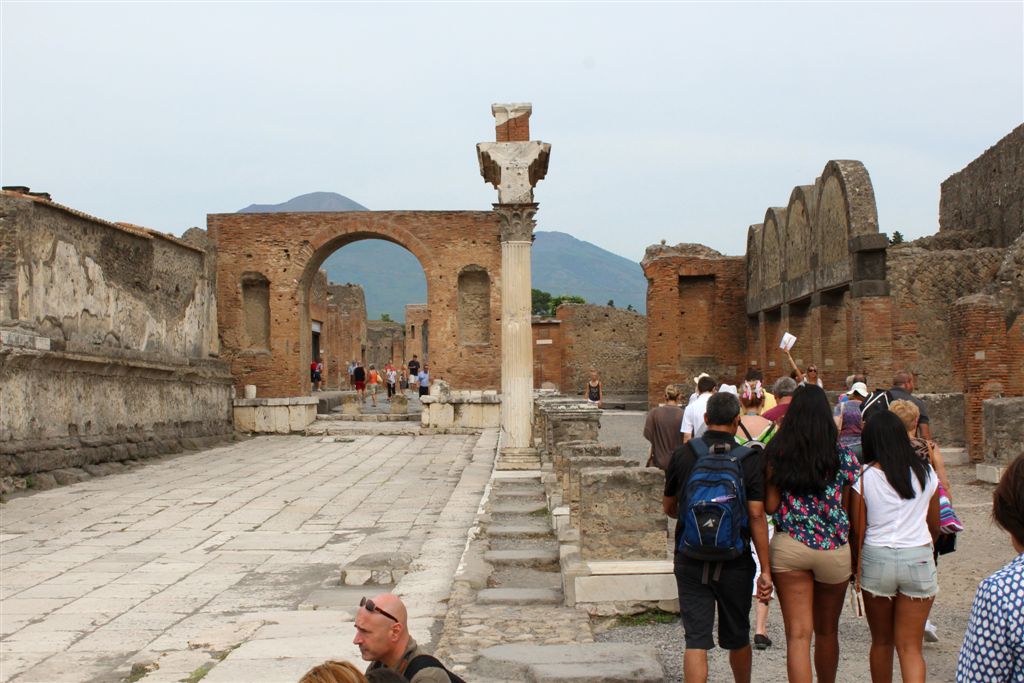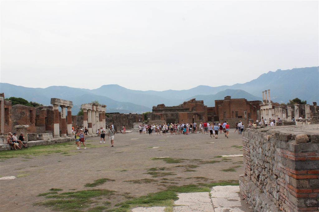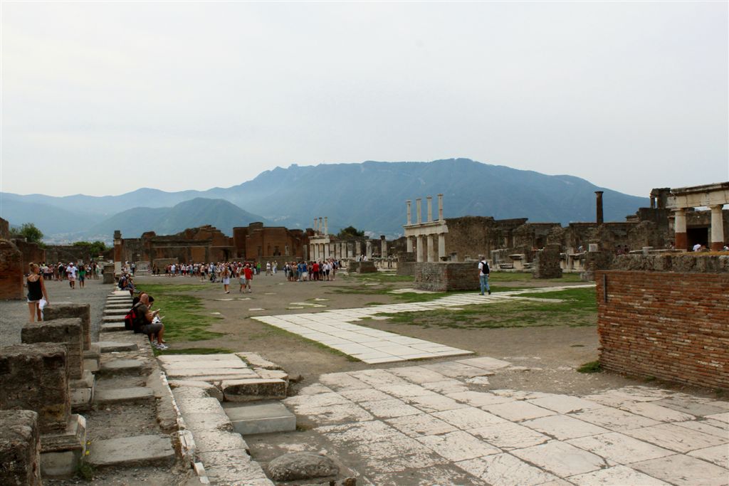[Our destination, Pompeii’s forum which at one time contained temples to Apollo and Jupiter, among others.]