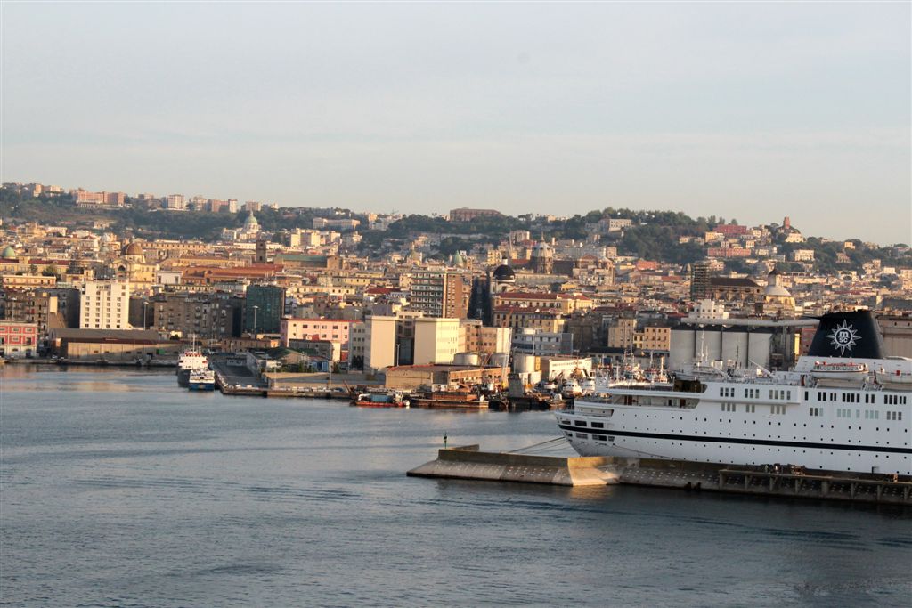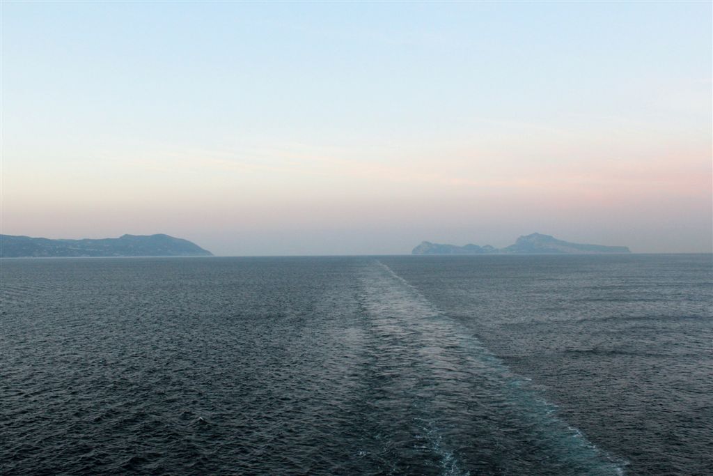 [As we entered the Gulf of Naples, that’s the Sorrento Peninsula on the left and the Isle of Capri on the right. There’ll be a quiz on this later.]
