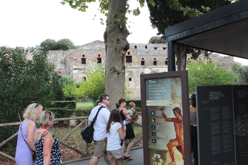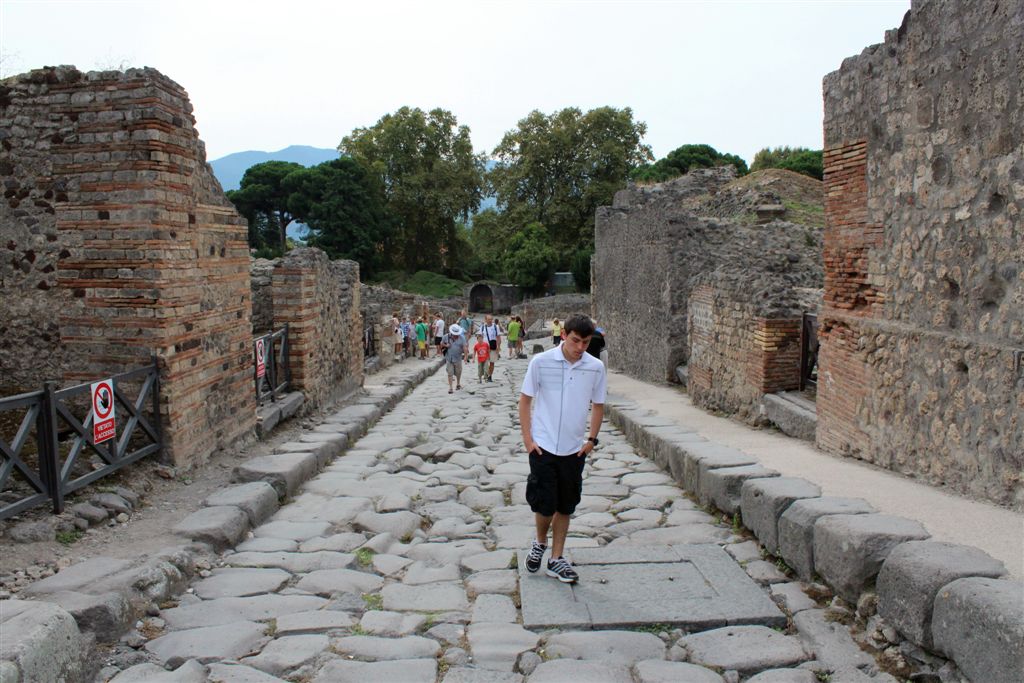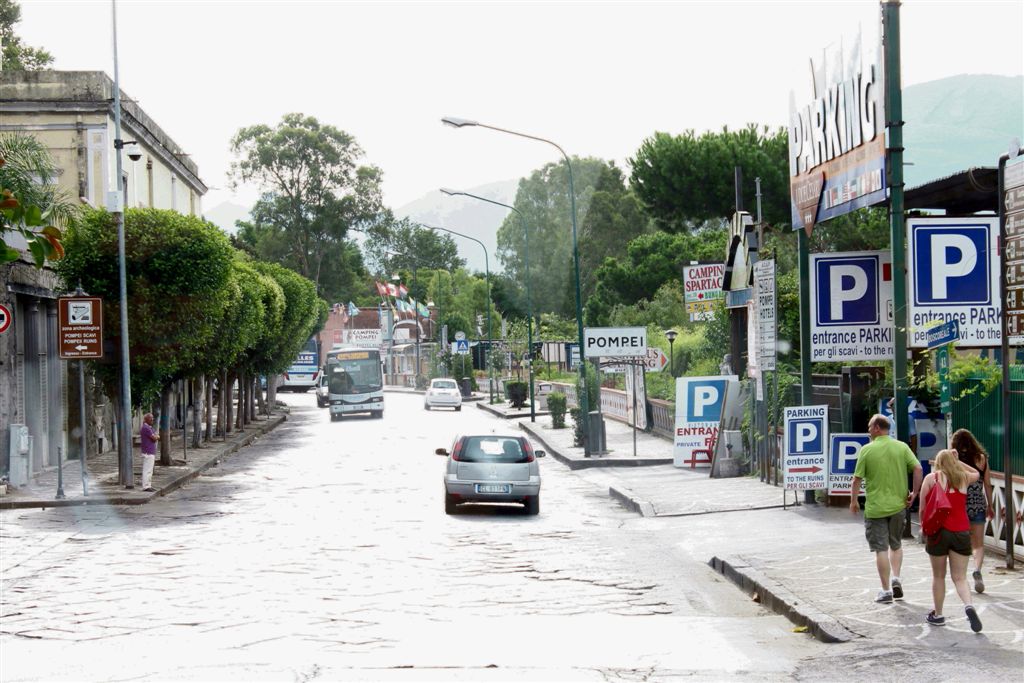 [Entering Pompeii (hmmm, the sign spells it with only one “i”?)]
