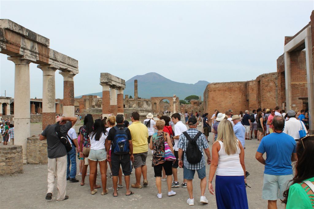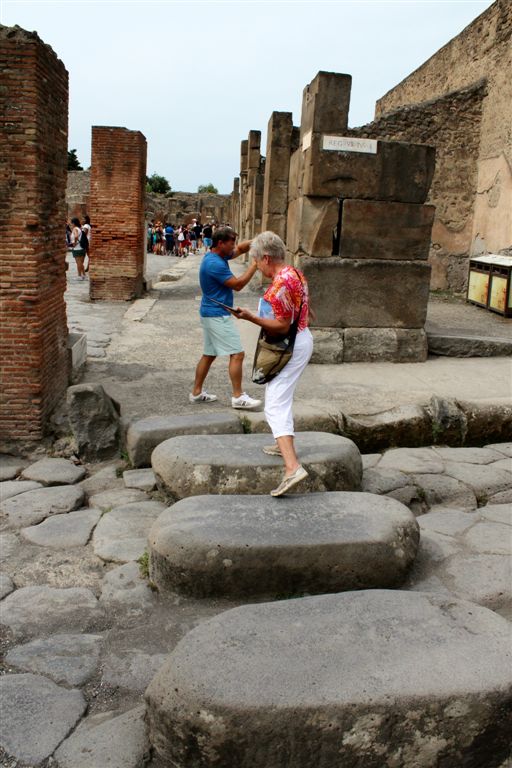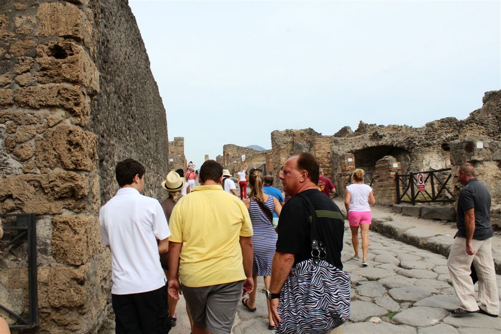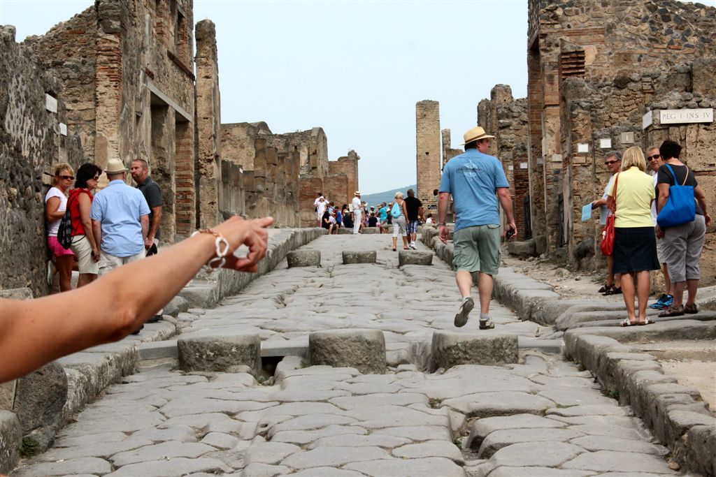 [We would not spend any time in Naples. We boarded a bus and headed for Pompeii, which you’ll all recall from your history, is up close and personal with Vesuvius.]