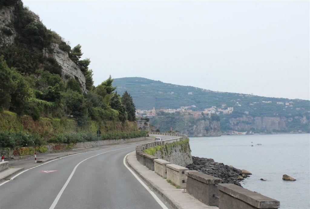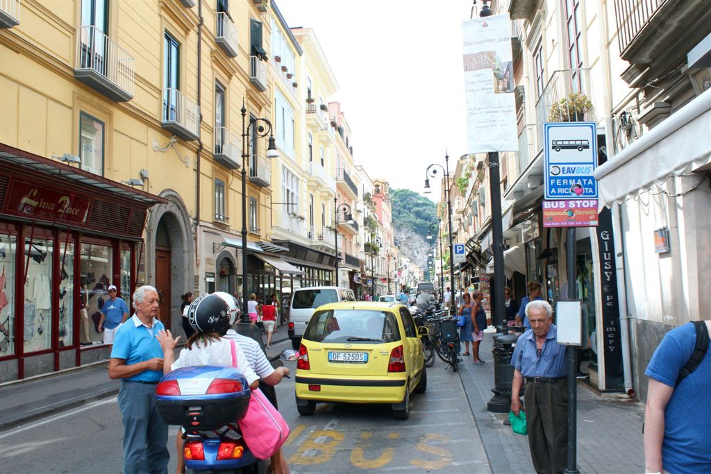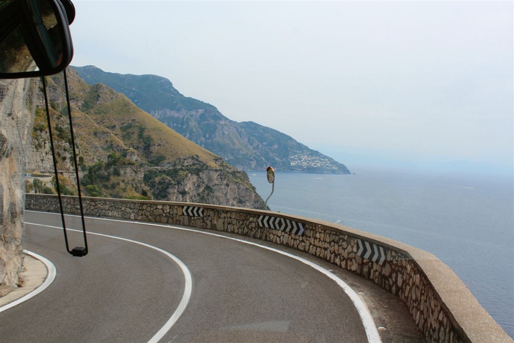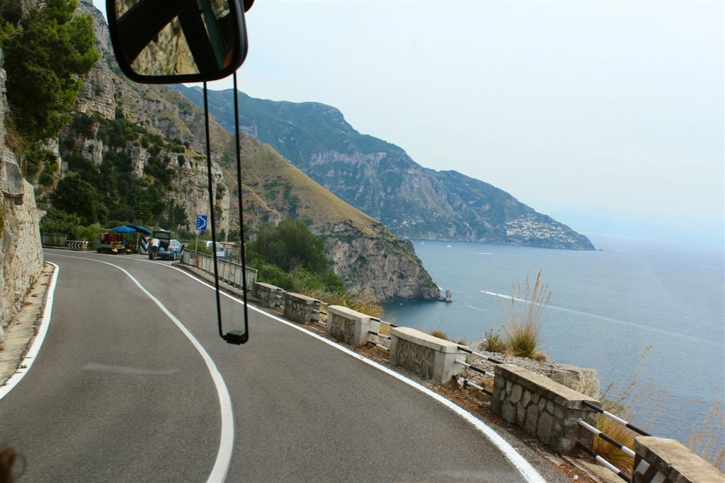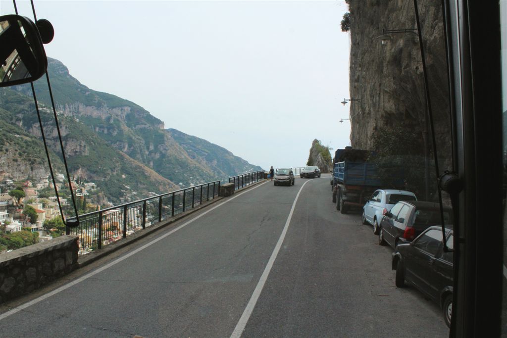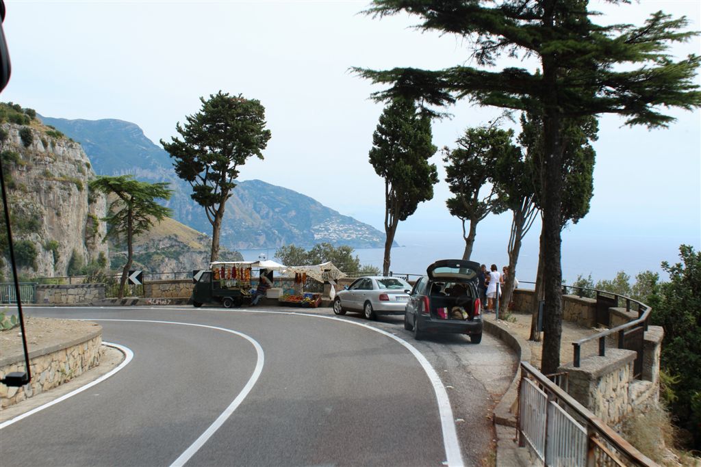 [The Sorrento peninsula and Amalfi coast highways are more conducive to travel by Smart Cars and motorcycles than buses!]